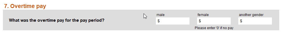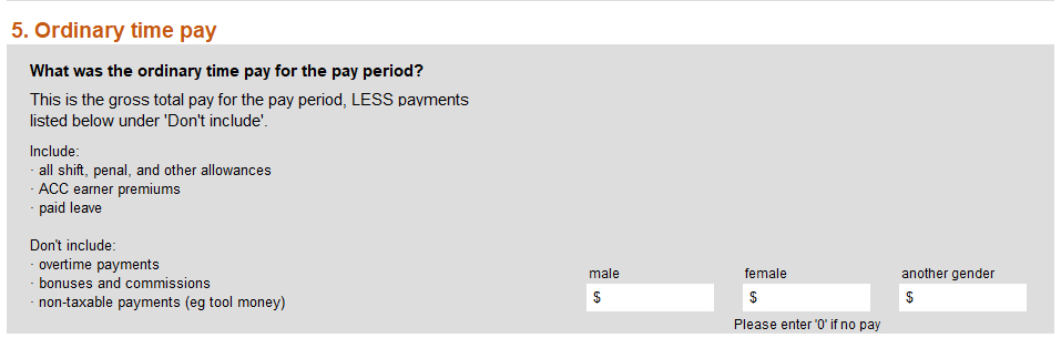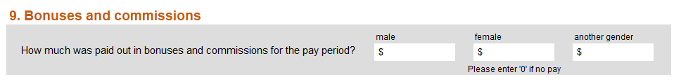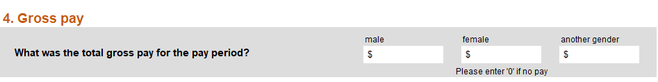 For each payroll (e.g. weekly, fortnightly, monthly), the following data points (DP) split by gender (female, male, other) will be available: