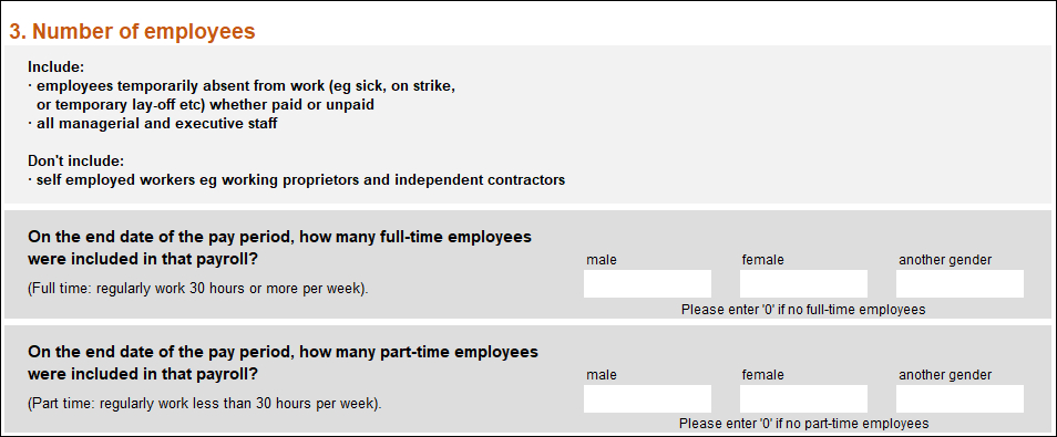 Stats NZ also requires that employee numbers are specified by business location as at the specified date (note that there is no requirement to split this data point by gender or part-/full-time).