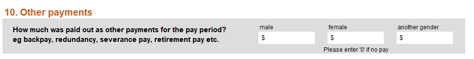 - Other payments (e.g.: backpay, redundancy, retirement)