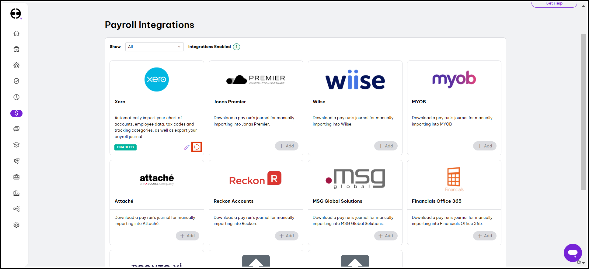This article explains how to manage payroll integration on the EOS platform. Integrations allow you to import information such as chart of accounts and employee data into your EOS platform. You can enable and disable payroll integrations as needed