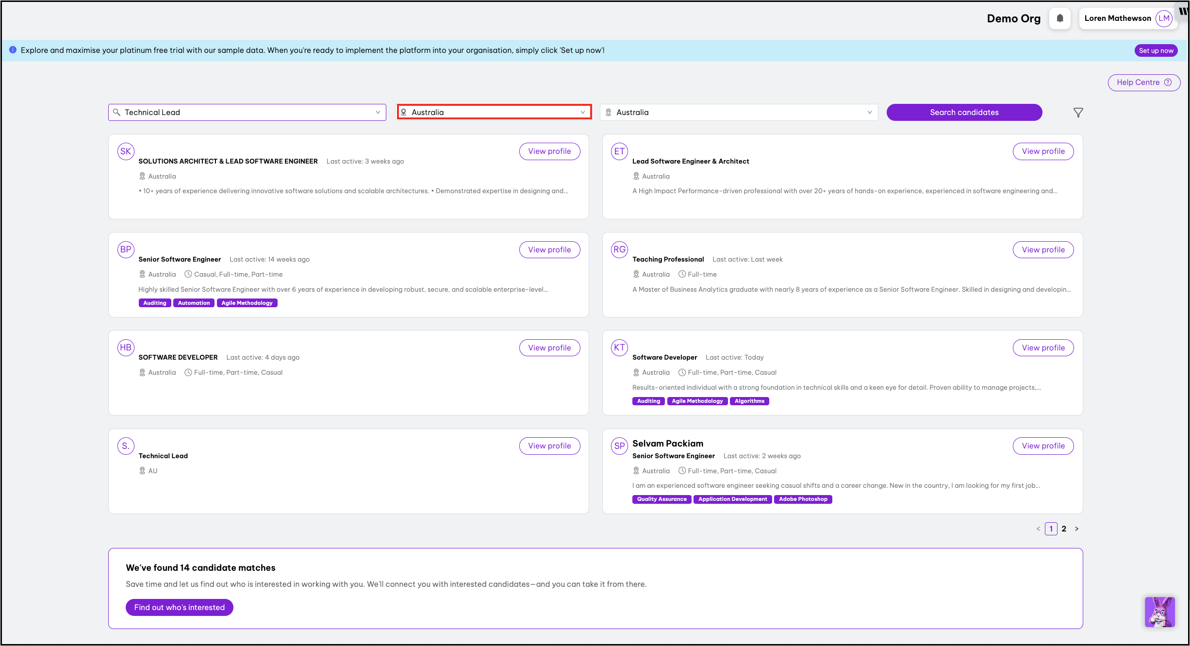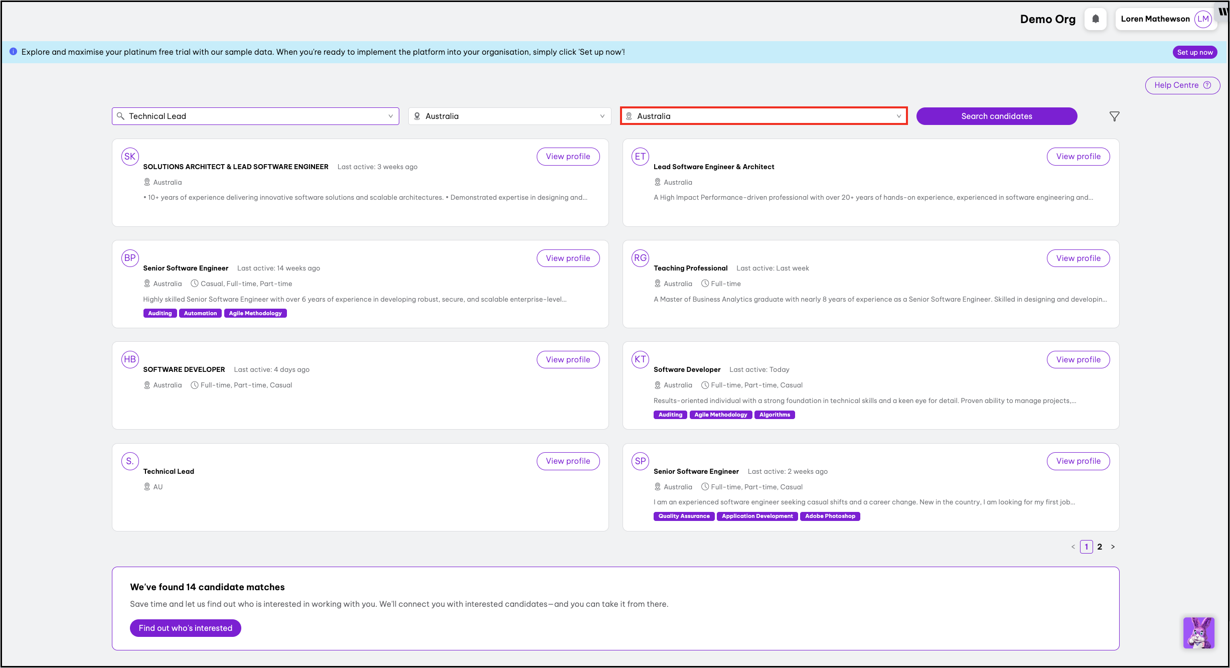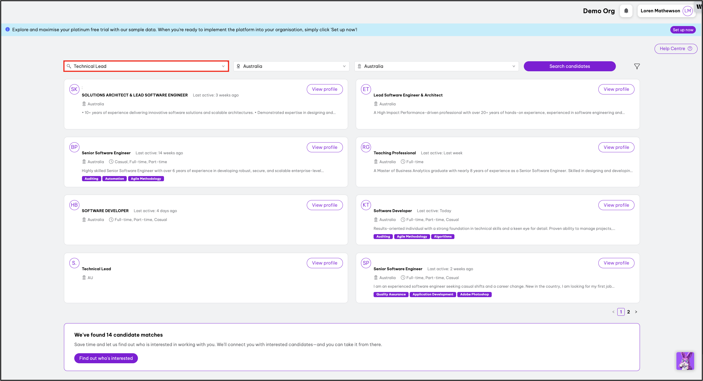 - Employment Hero will display the top 15 candidate matches.