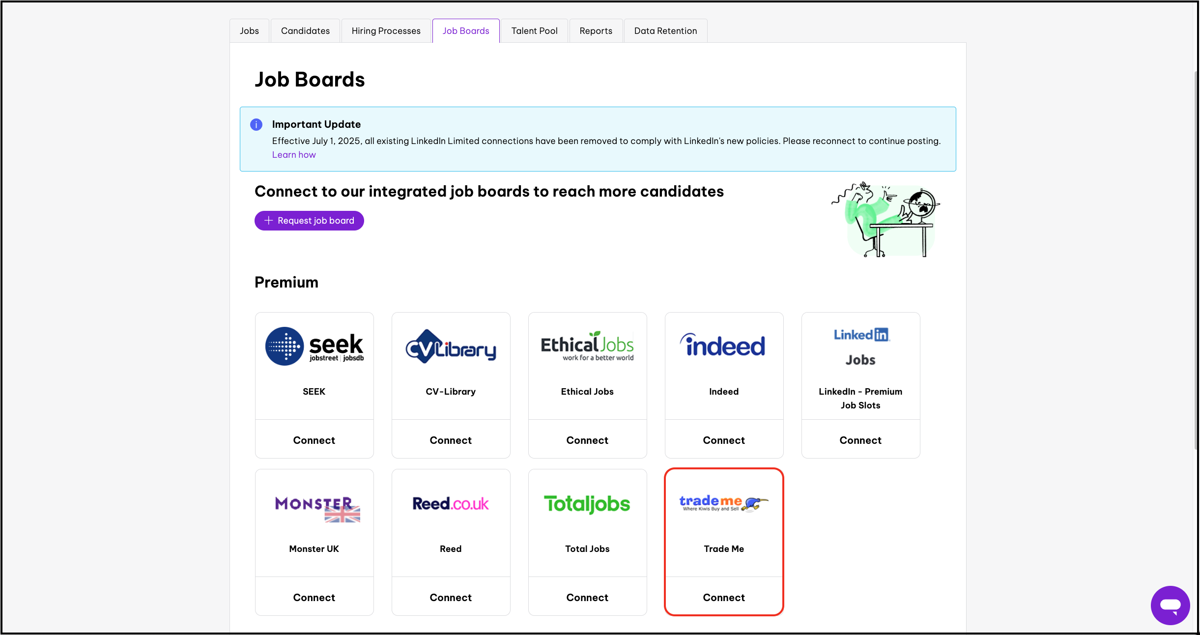 - Click on the Job Boards tab.