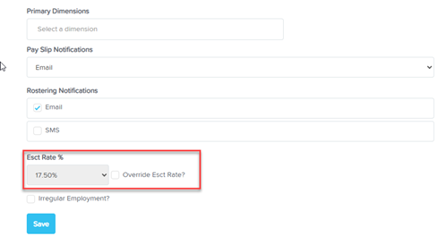Where to find the ESCT rate field in Employment Hero Payroll