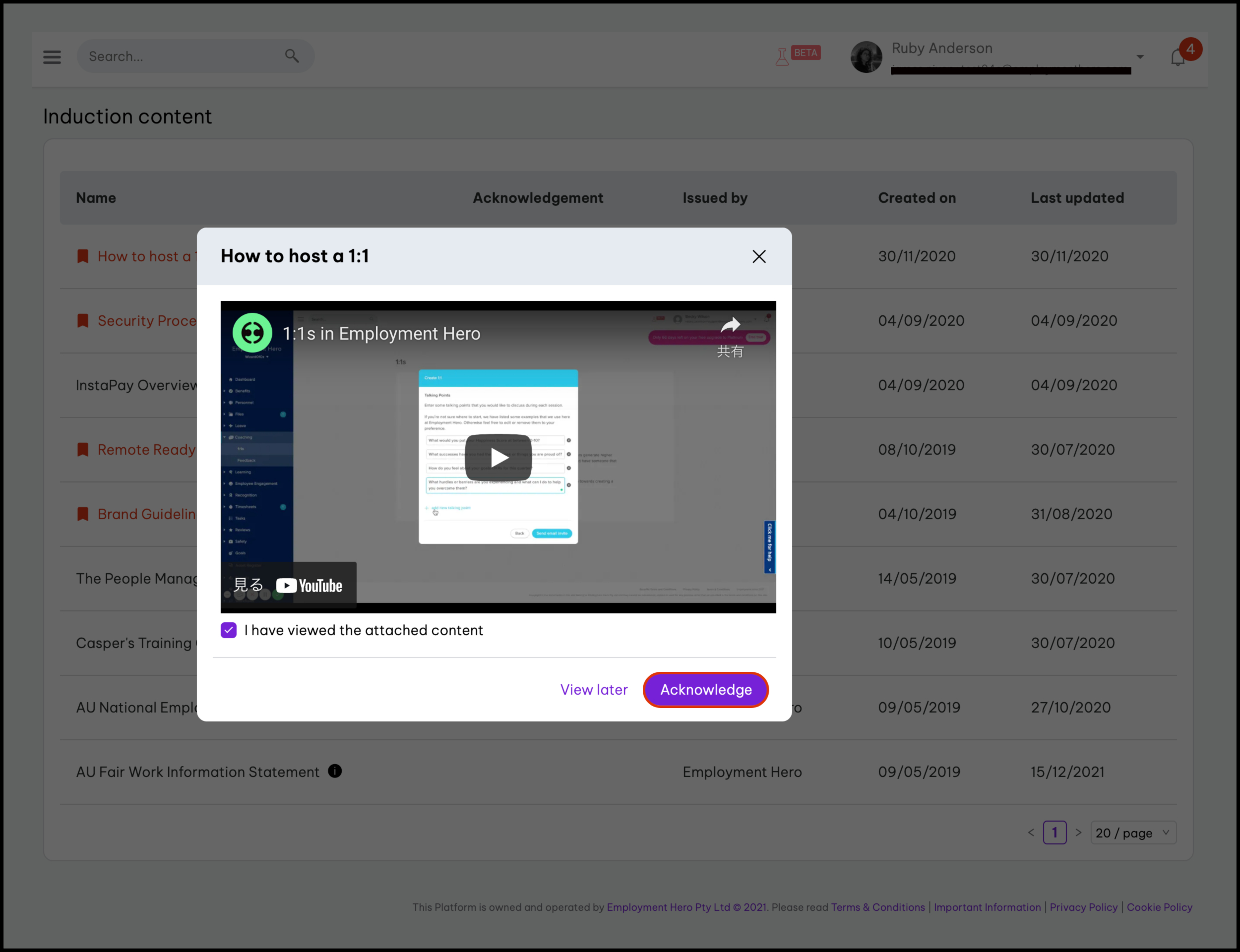 If you edit or alter your Induction Content, we will ask any employees linked to this document, and assigned to this content to acknowledge it again.