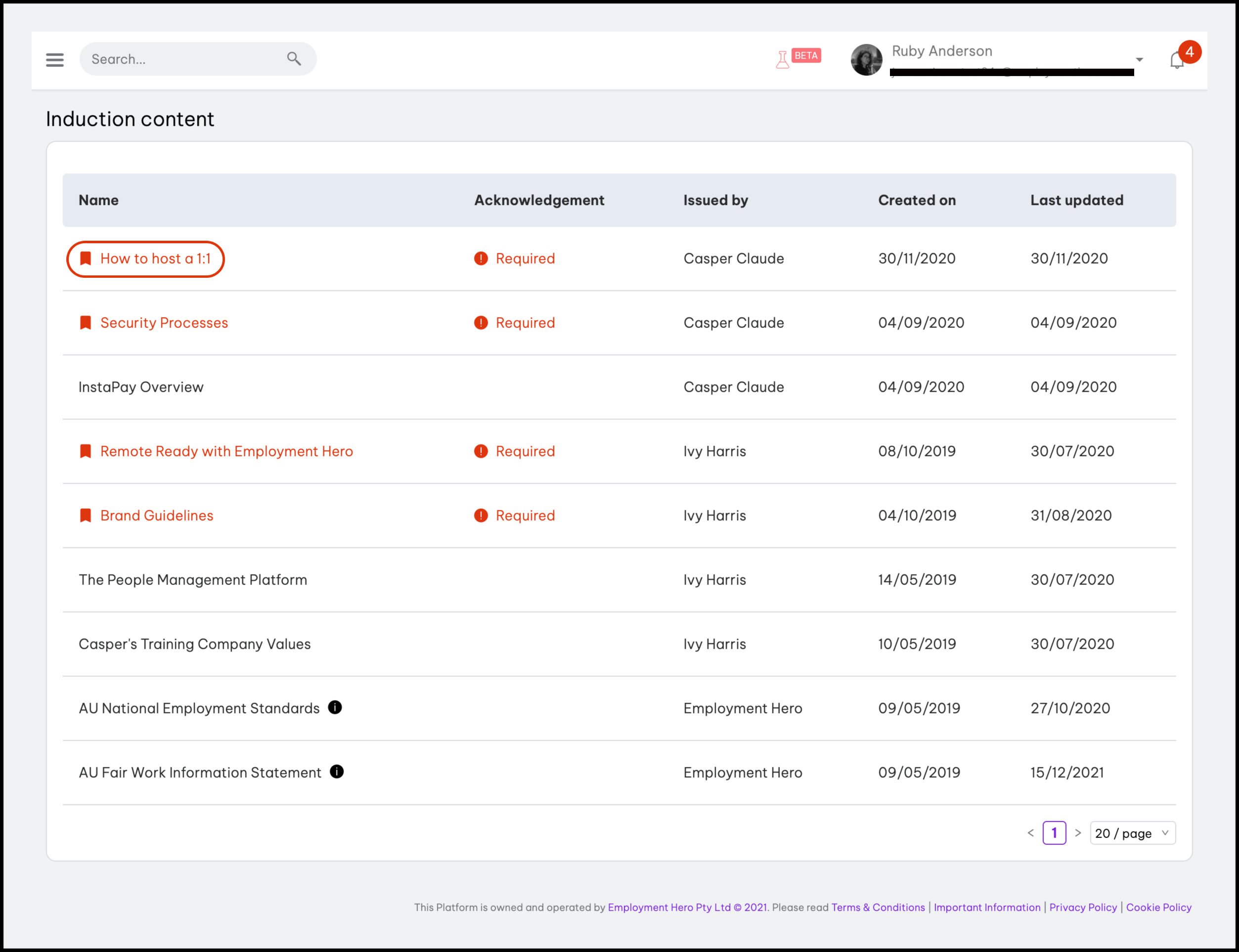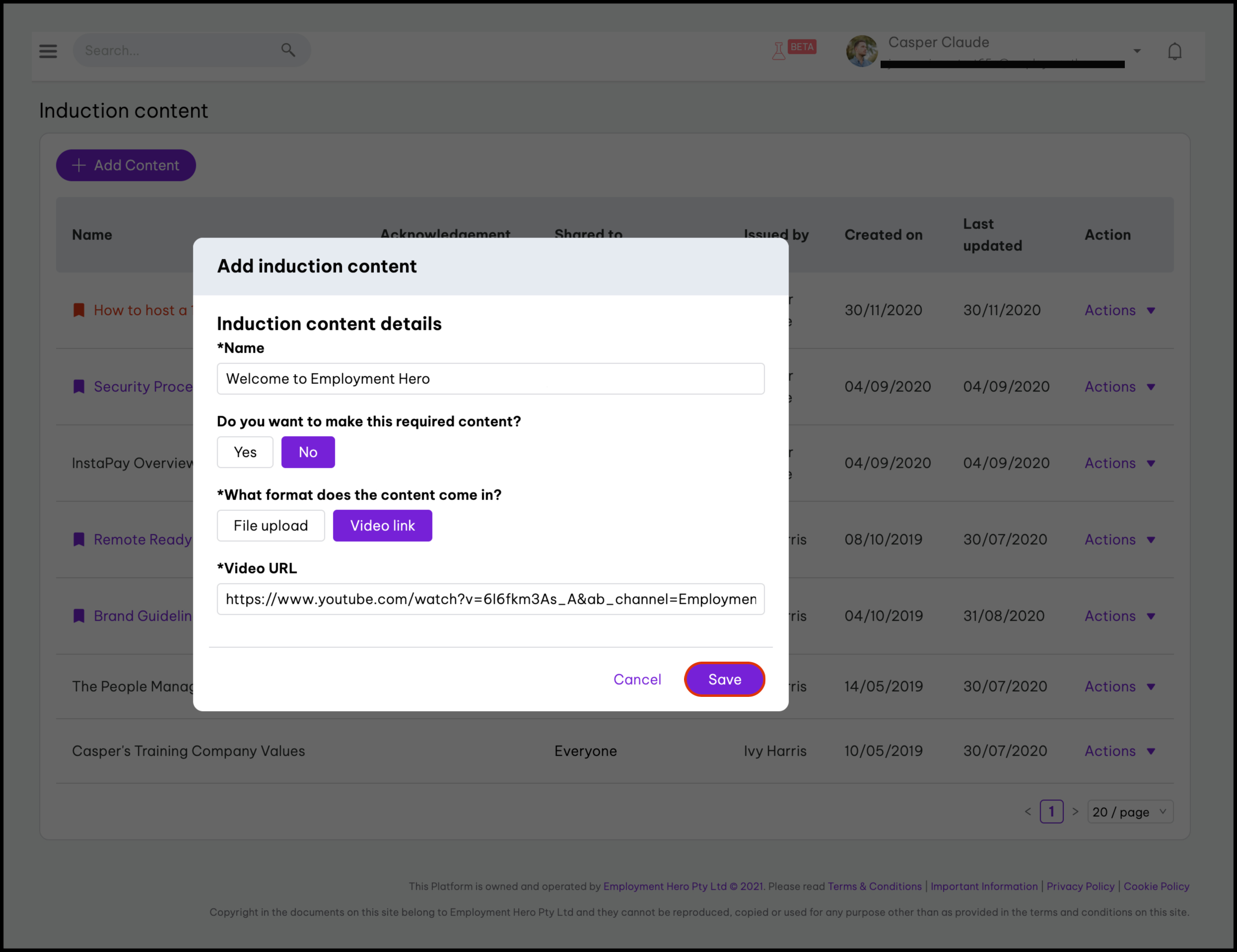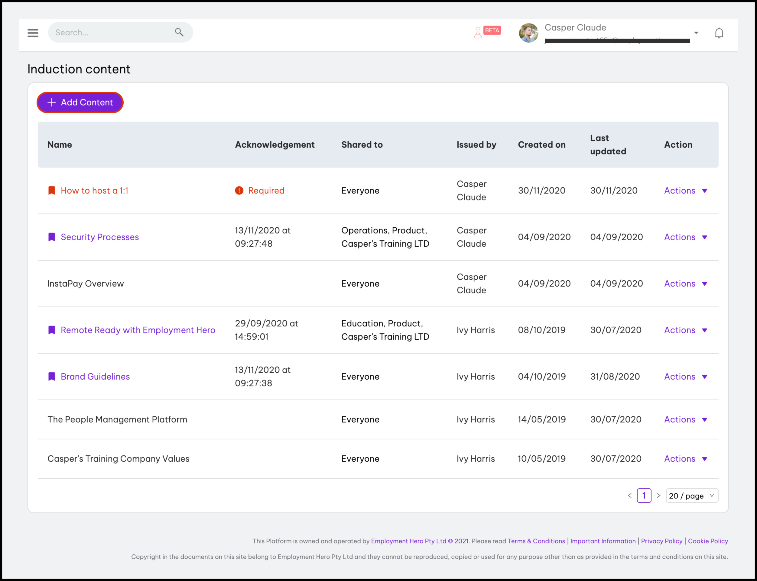 If you replace induction content with a newer version, then you will permanently lose any supporting documents and employee acknowledgements attached to the previous version. Also, you can only report on induction content marked as required via the Induction Content report. It is because we do not ask employees to acknowledge non-mandatory induction content.