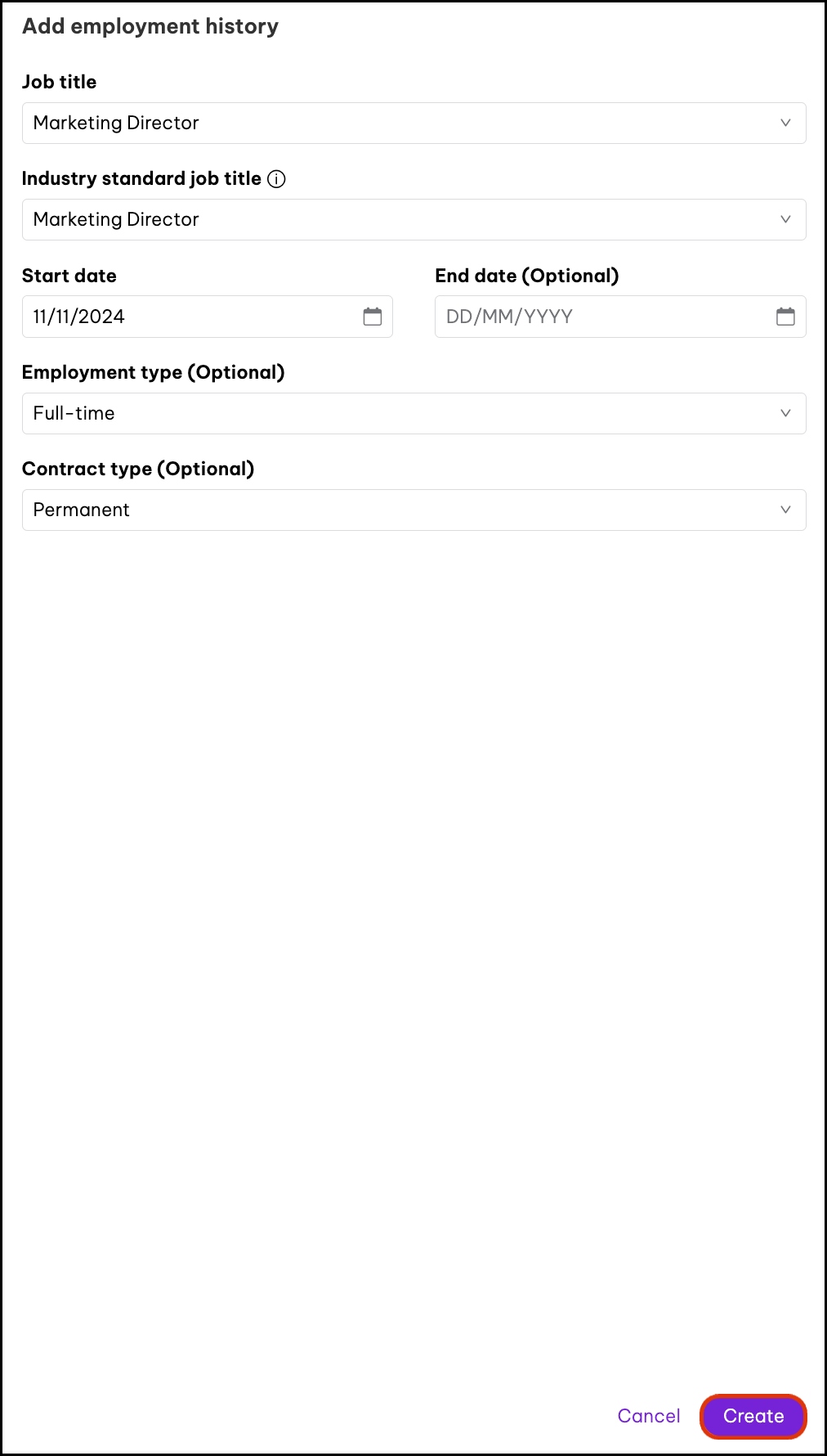 - Click the + Add employment history button.