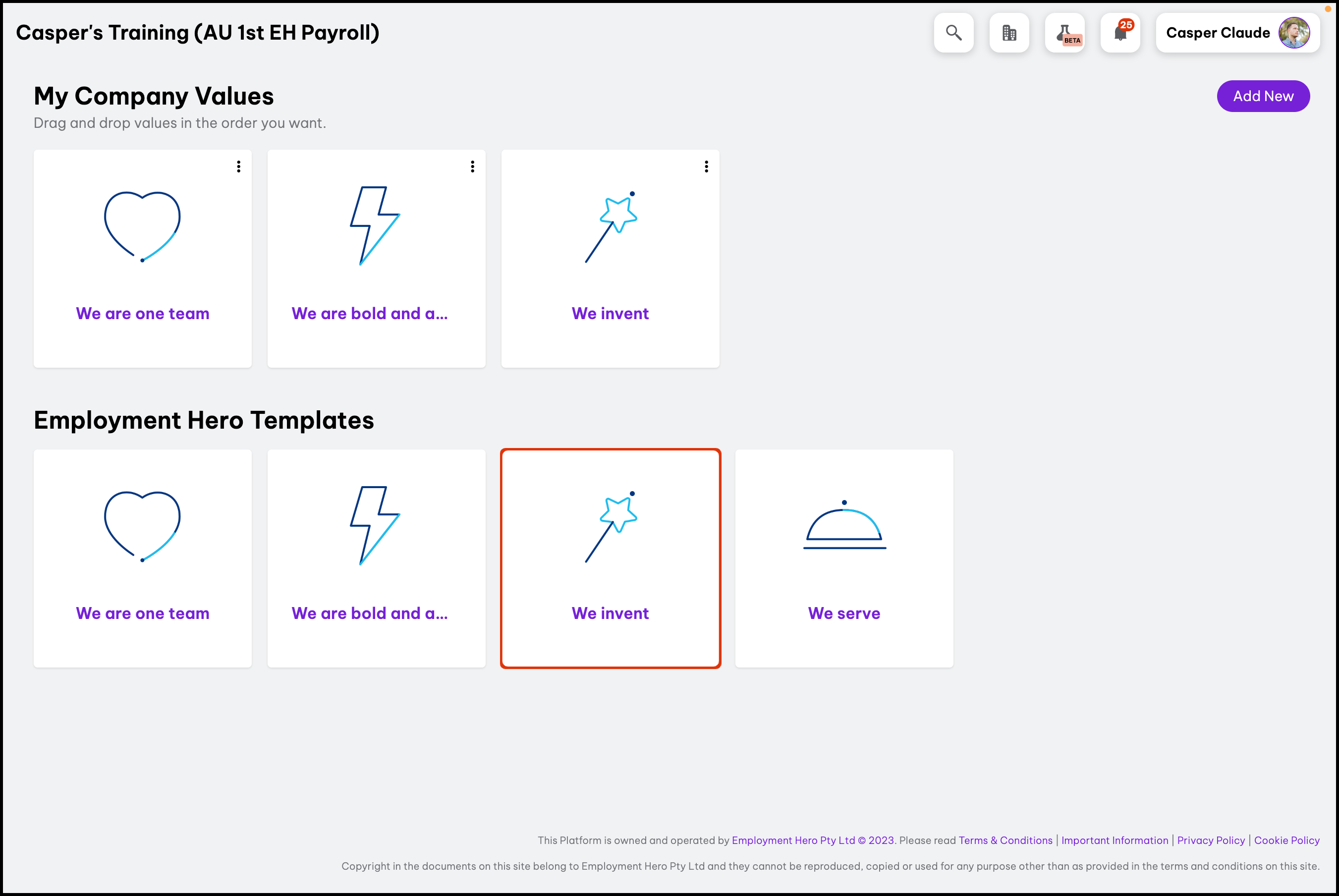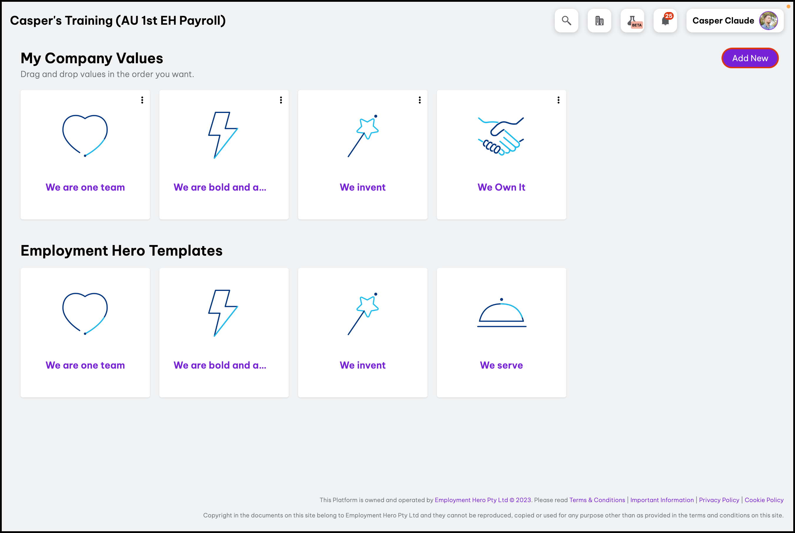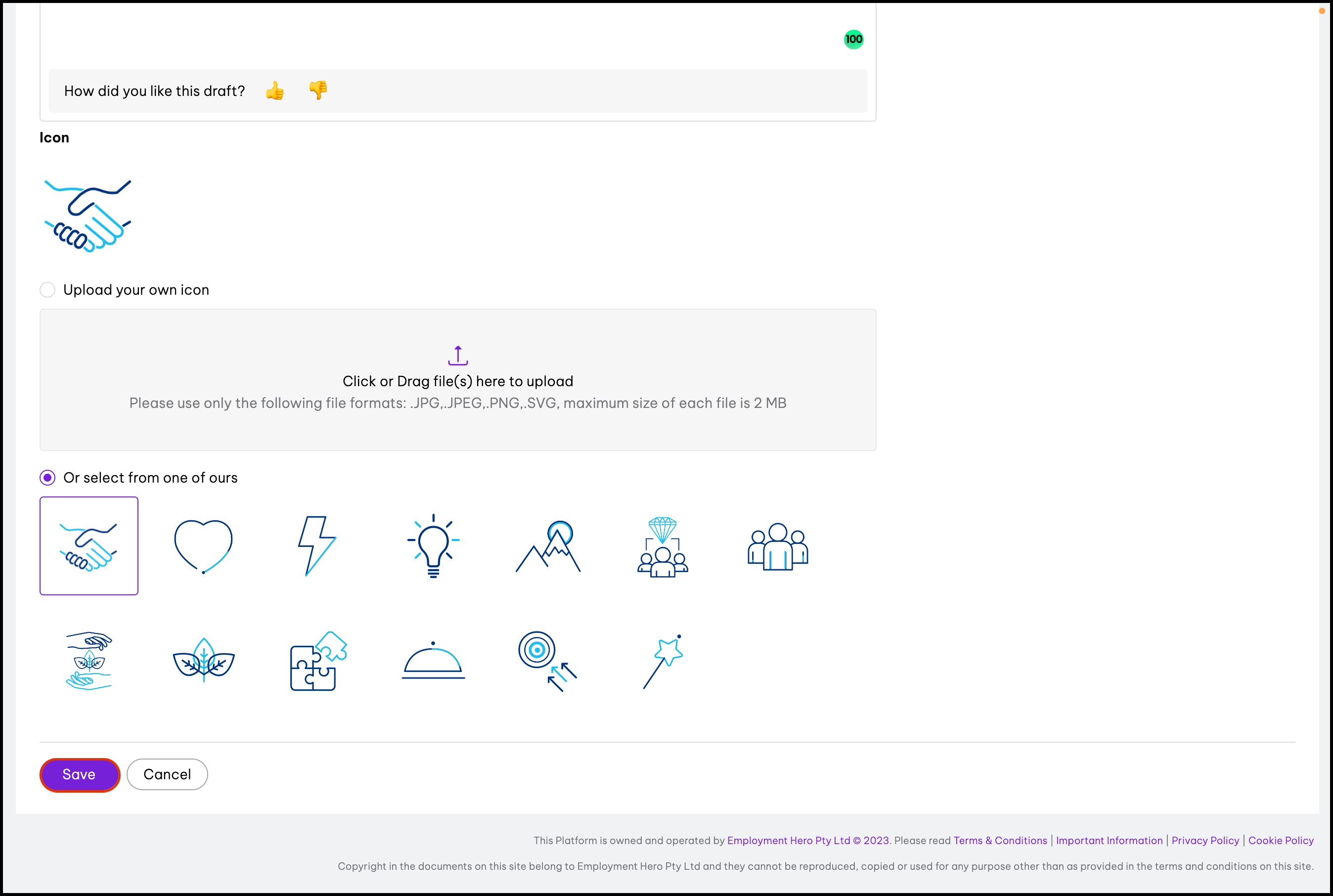 - Choose from Employment Hero provided icons.