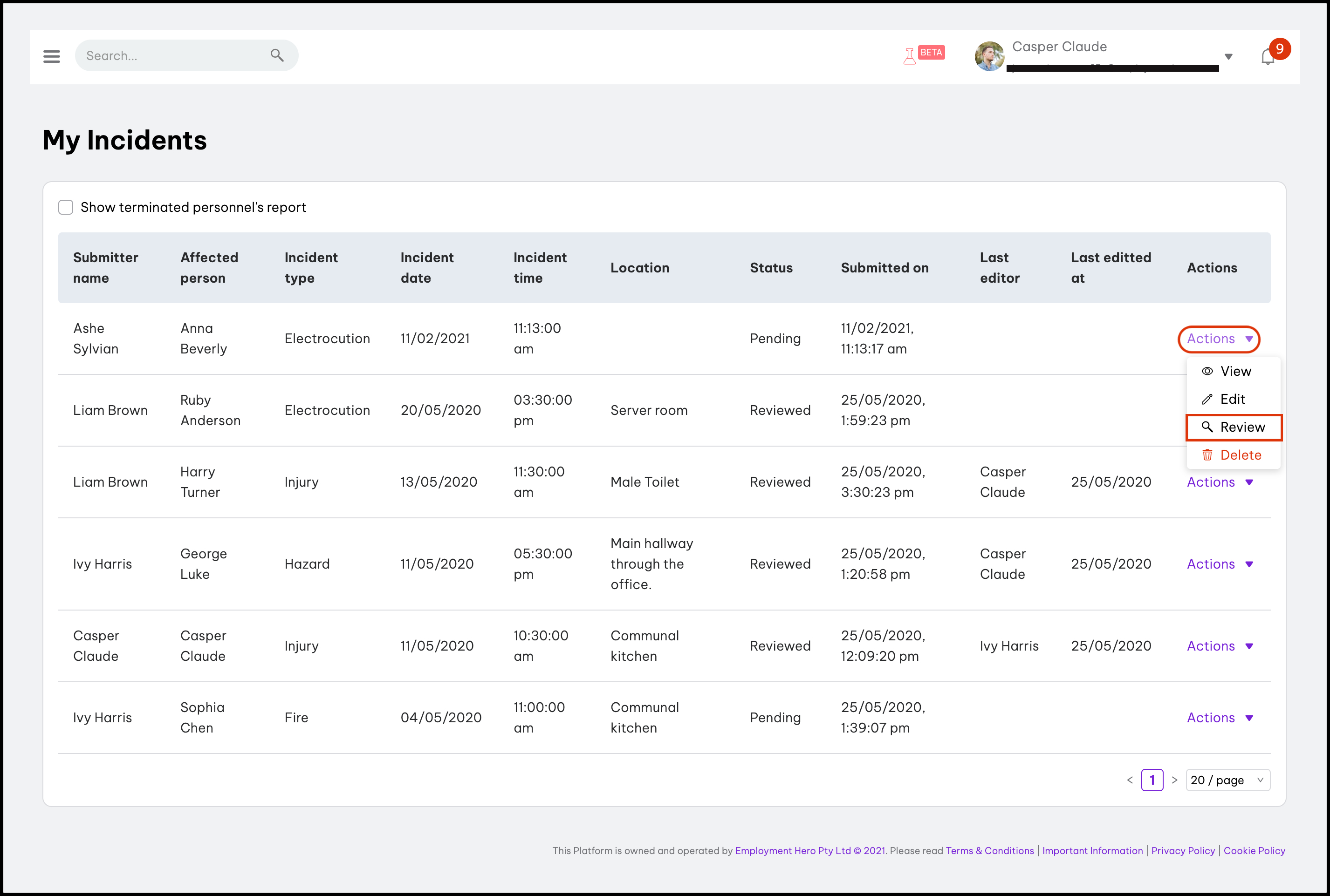 Only Admins, Owners and/or employees listed as a health and safety contact can manage the My Incidents module in full. Employees who meet any of the following criteria can view and delete reports within the My Incidents module: