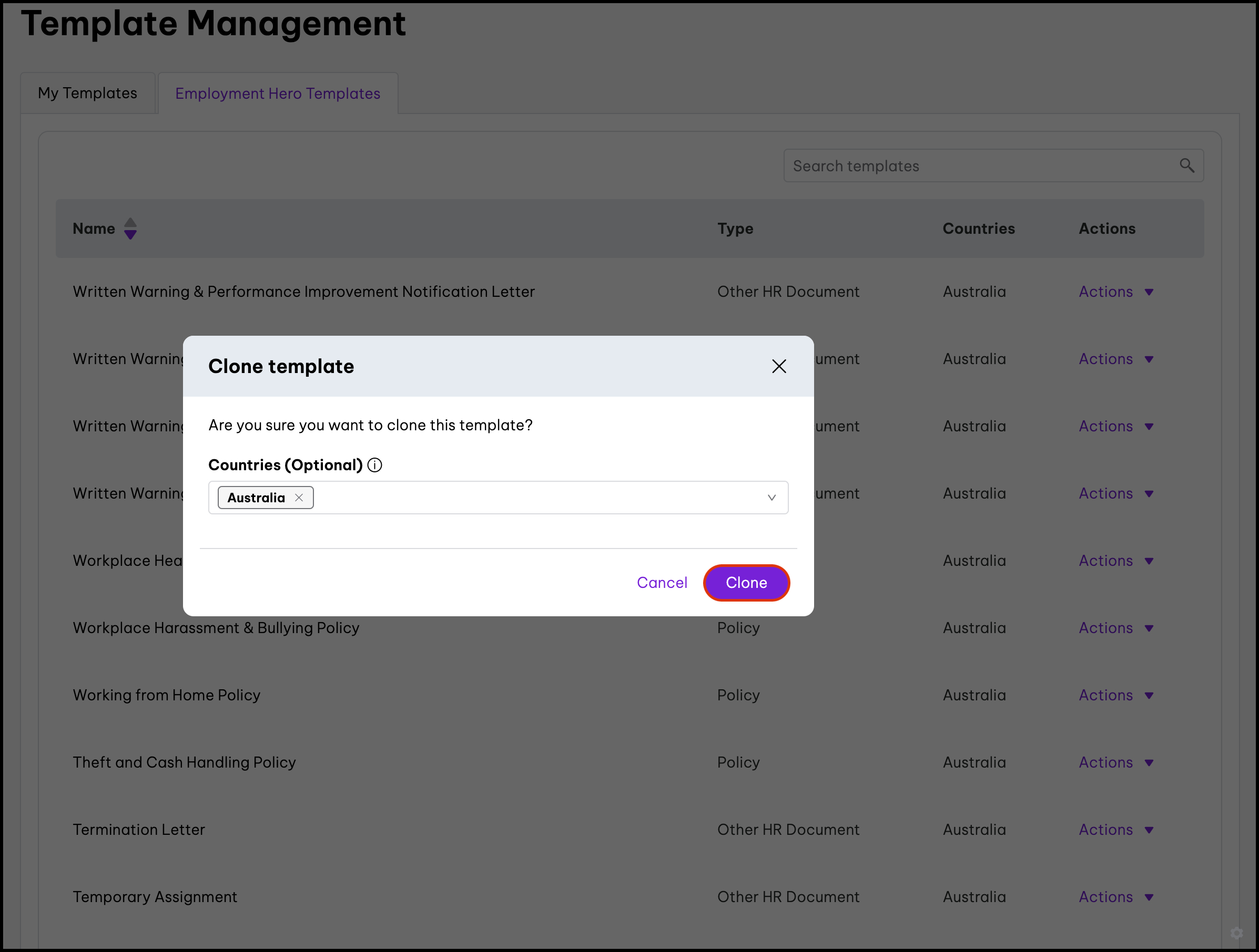If your Employment Hero account was created on or after 19 December, 2025, then see this article for the new document template creation process.