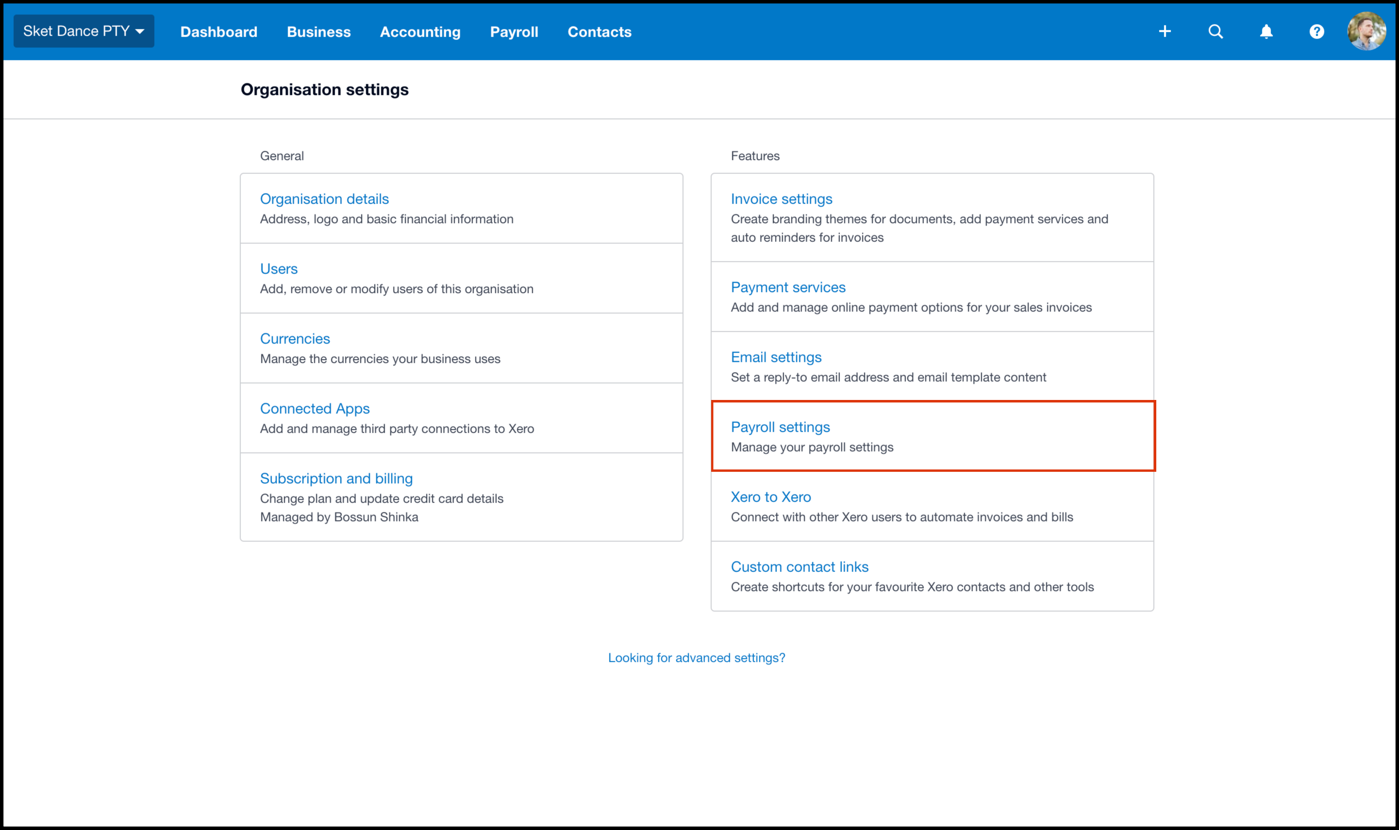 - Click the Payroll Settings menu.