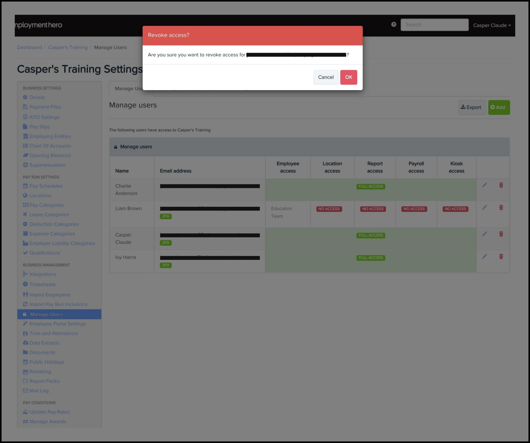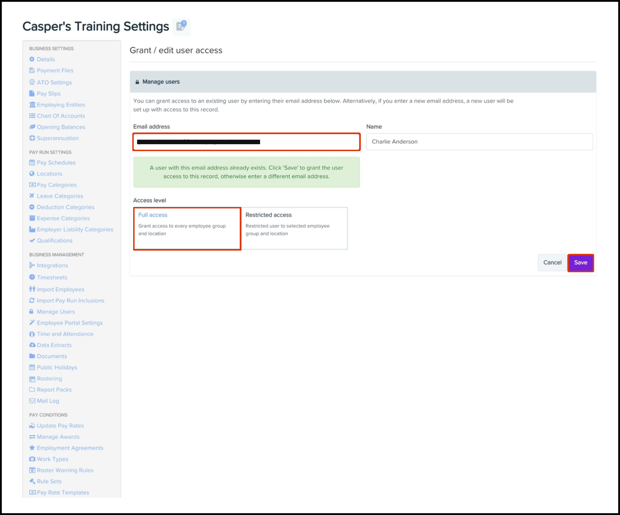 The Granting Full Access feature allows you to set up and manage what users have access to EH Payroll classic. Full access gives the user administrator access to all functions within the payroll platform, including the ability to submit Single Touch Payroll (STP) pay event lodgements.