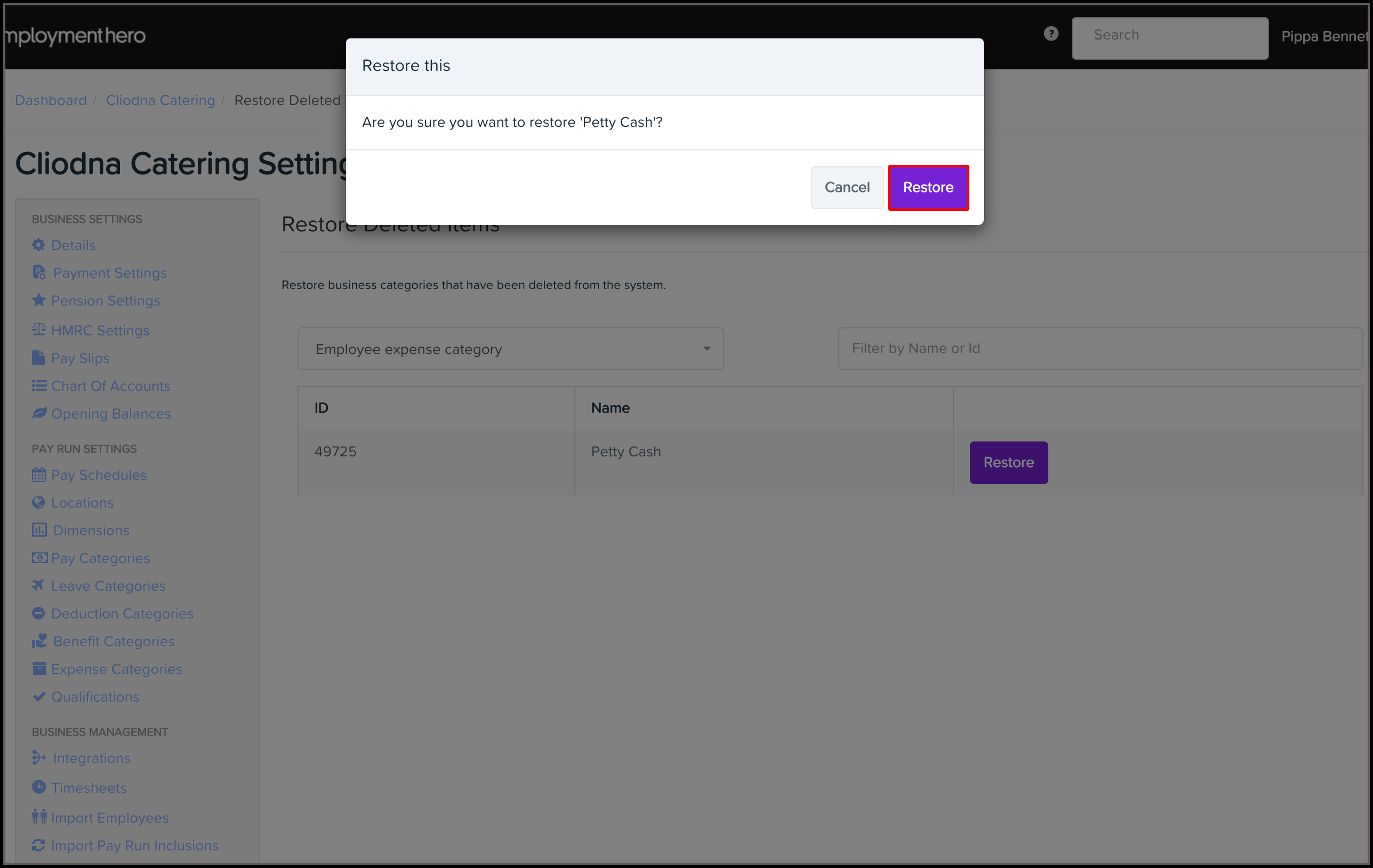 Deleted categories will not be available to select when creating new expense requests. However, deleted categories will be available in historical reporting and pay runs, as well as filters where applicable.