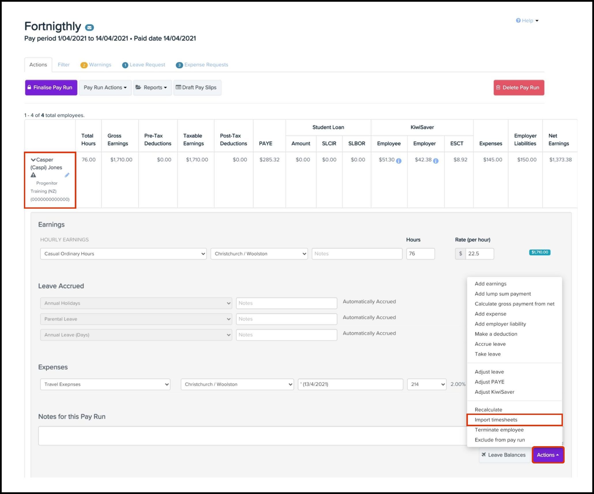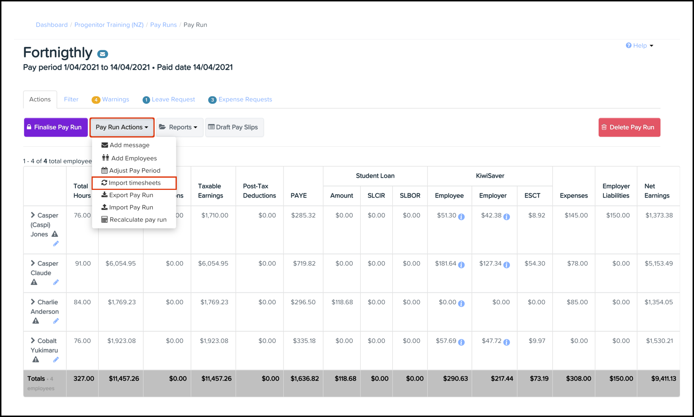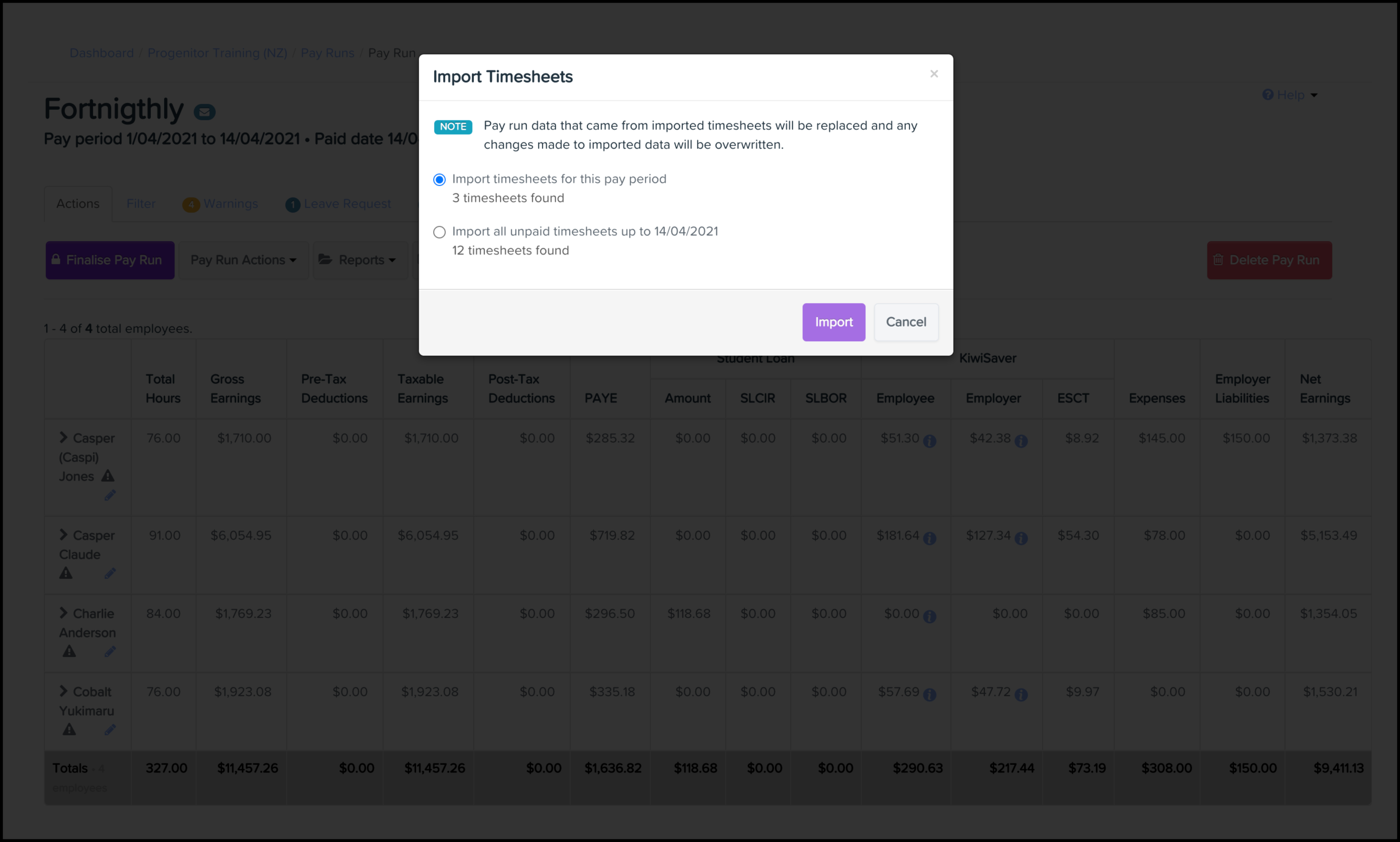 - Import timesheets for this pay period.