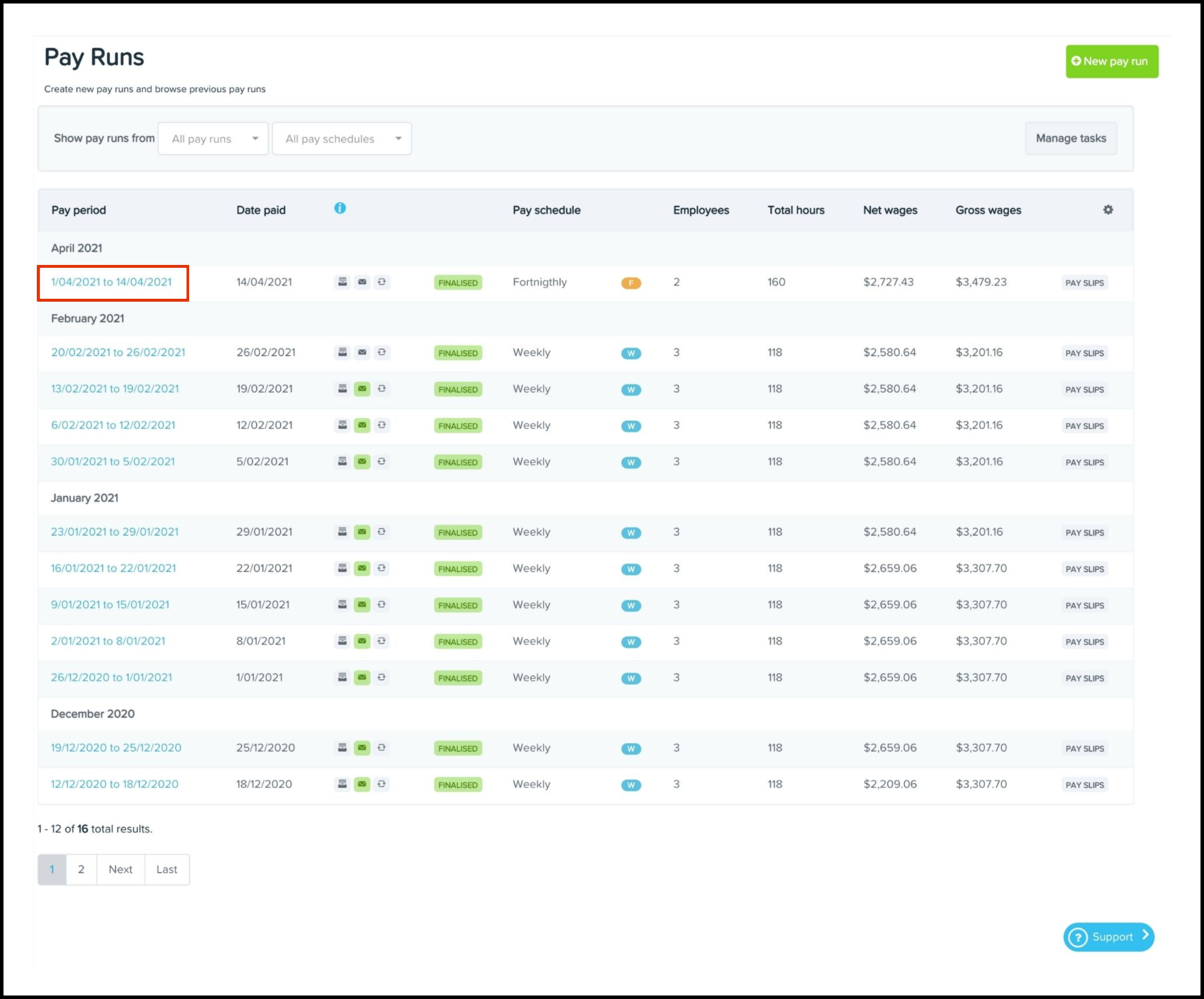 - Click the required finalised pay run.