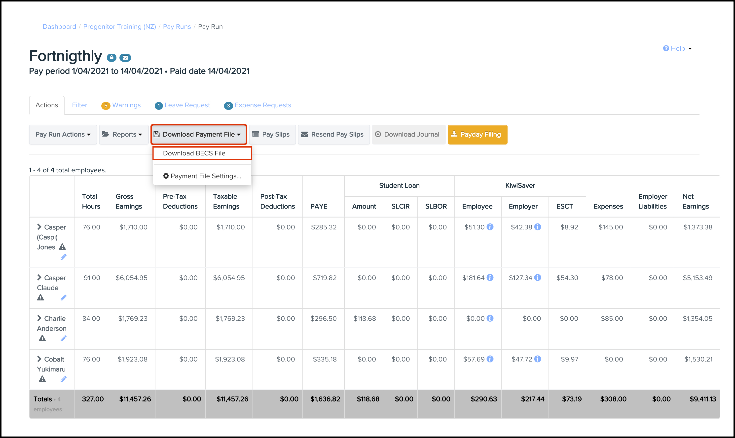 This feature allows you to download your pay run as a payment file, that you can then upload to your nominated bank account portal. You need to have set up this feature within your organisation's business settings before you can use this feature. To read further details on how to undertake this process, refer to the following article.