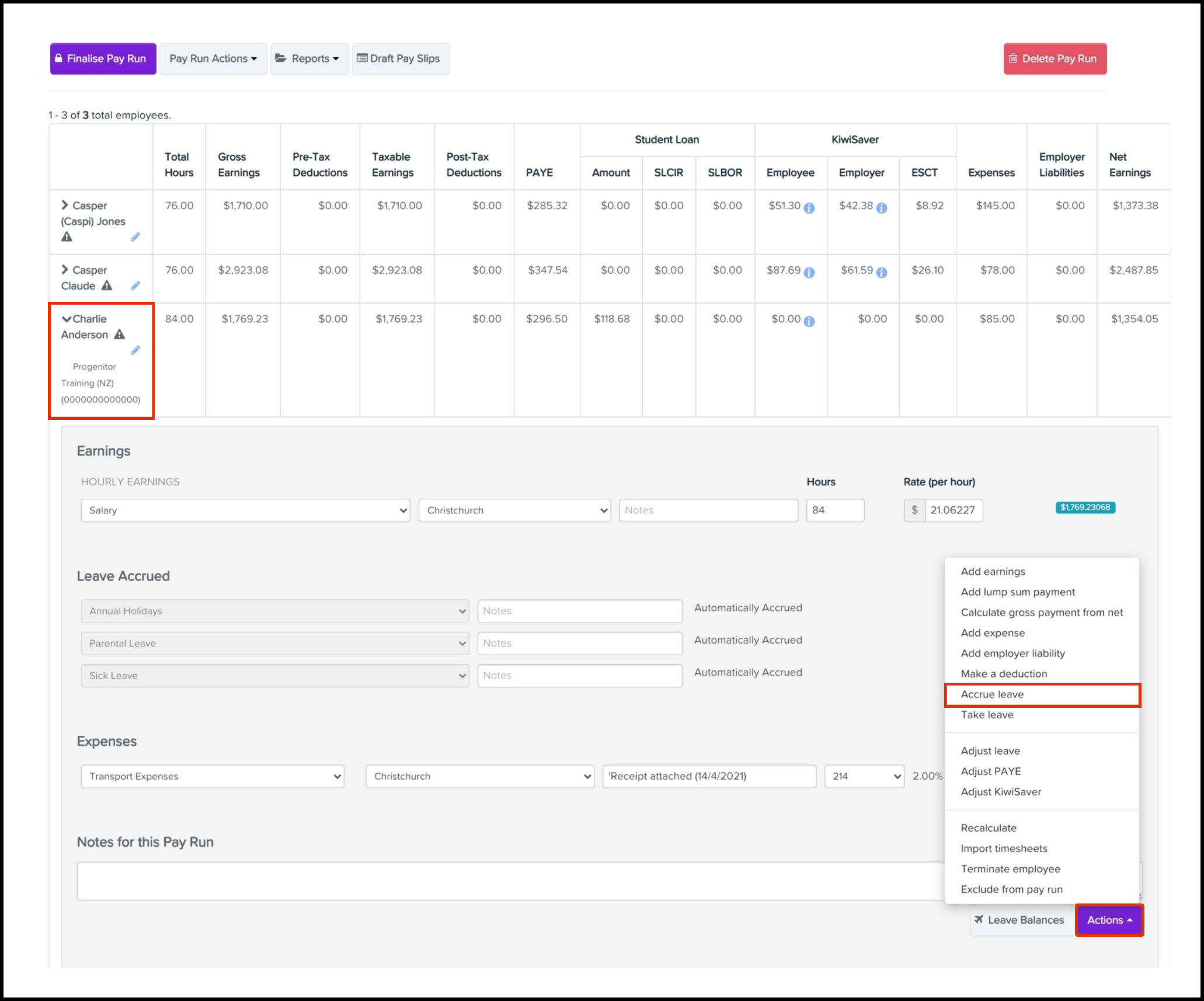 A pay run needs creating first, before you can add or remove employee accrued leave lines. To read further details on how to create a pay run, refer to the following article.