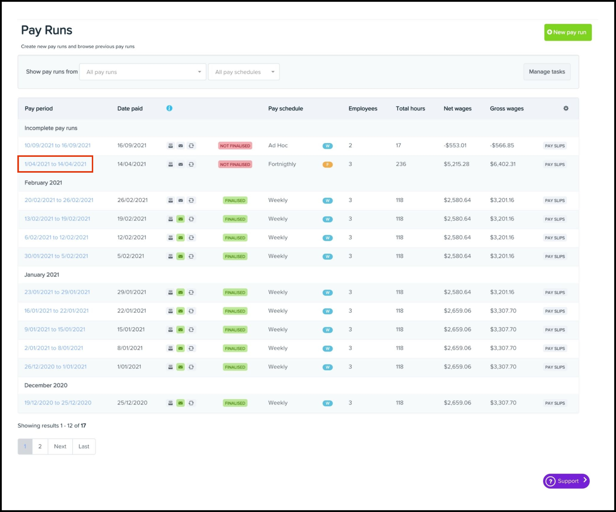 - Click on the required Pay Run.