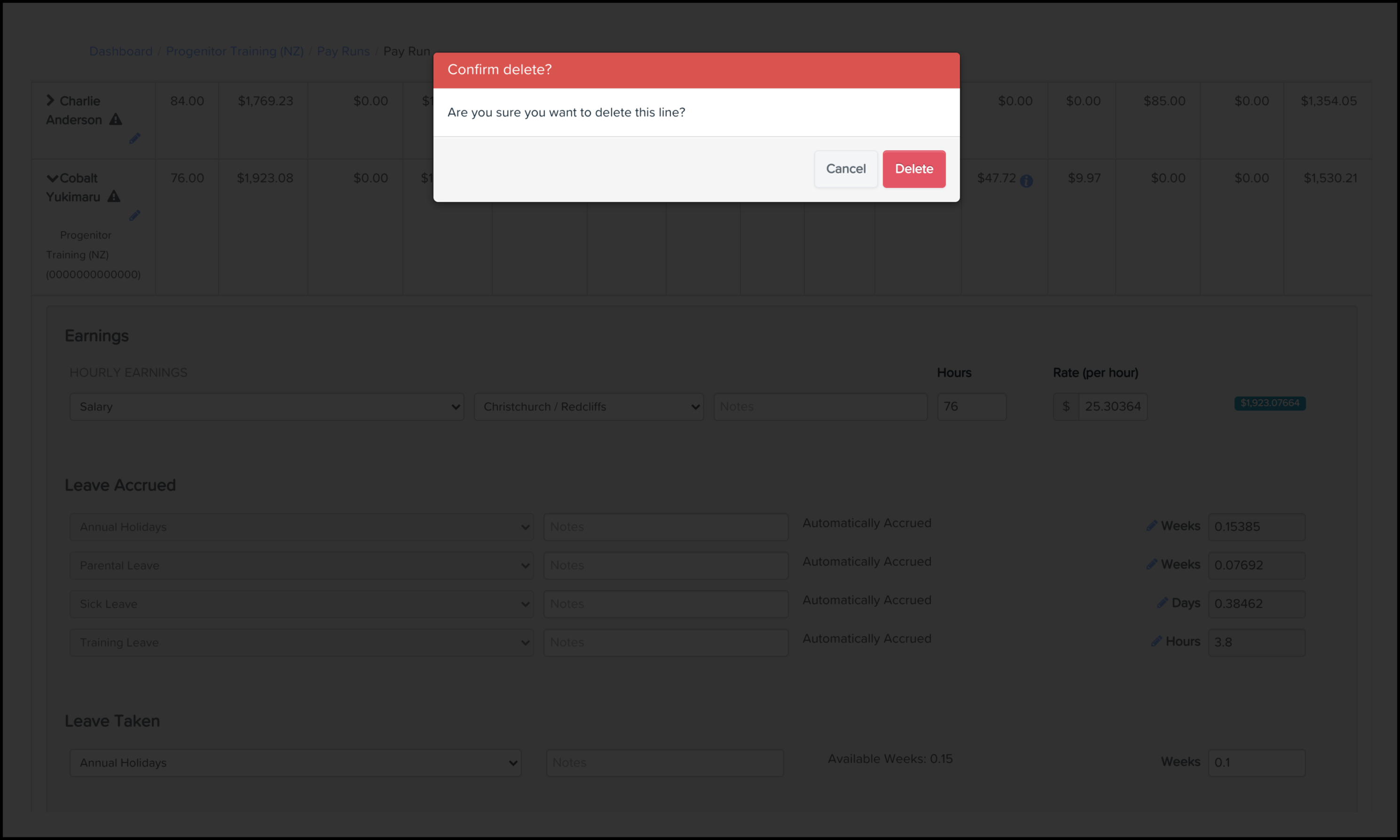 Delete an employee taken leave line
