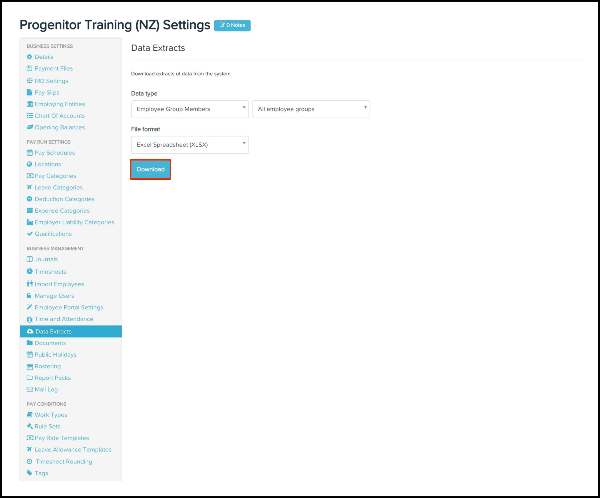 The Data Extract feature enables you to download your employee group member data stored within your Payroll classic platform as either a XLSX or CSV file.
