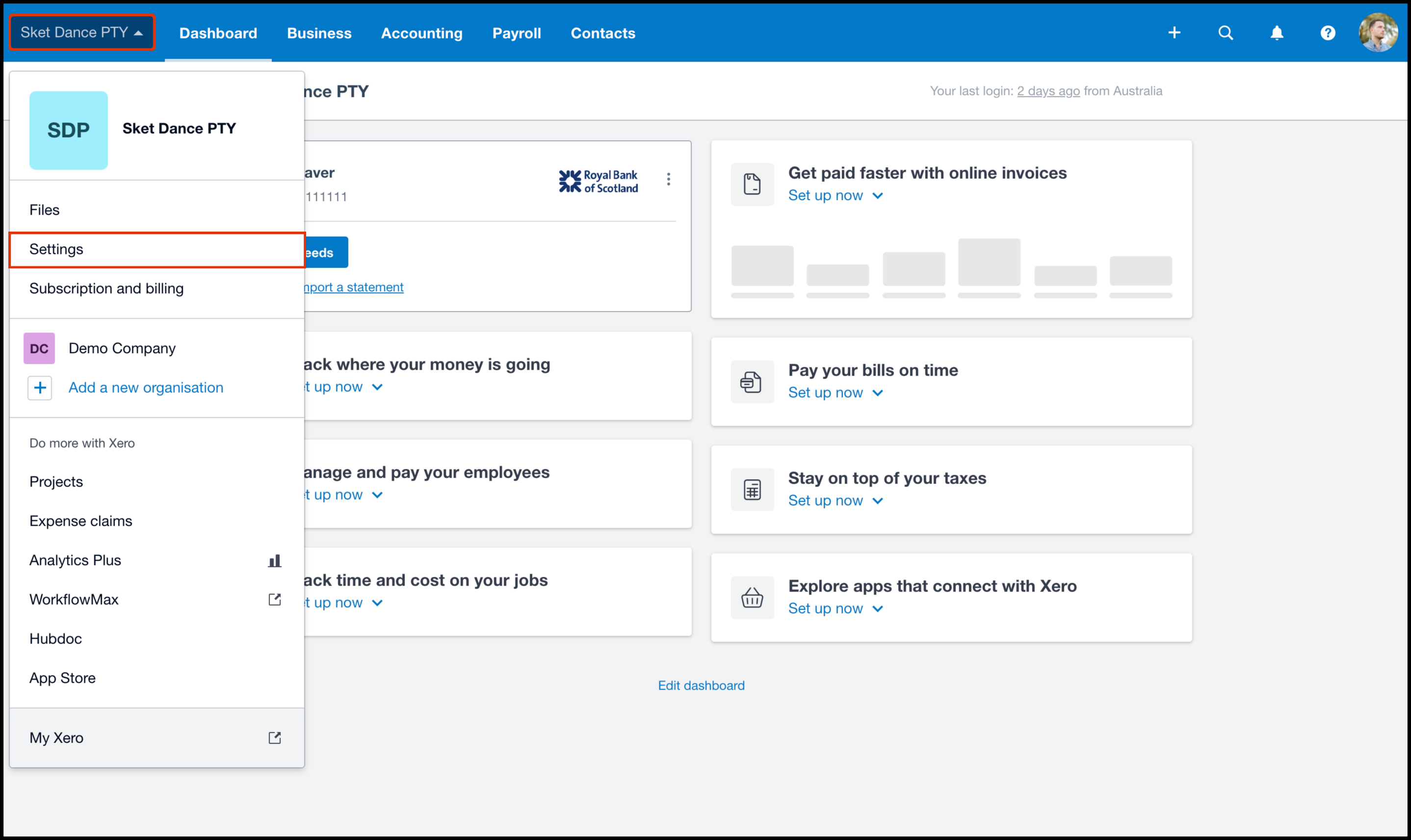 - Log in to your Xero platform.