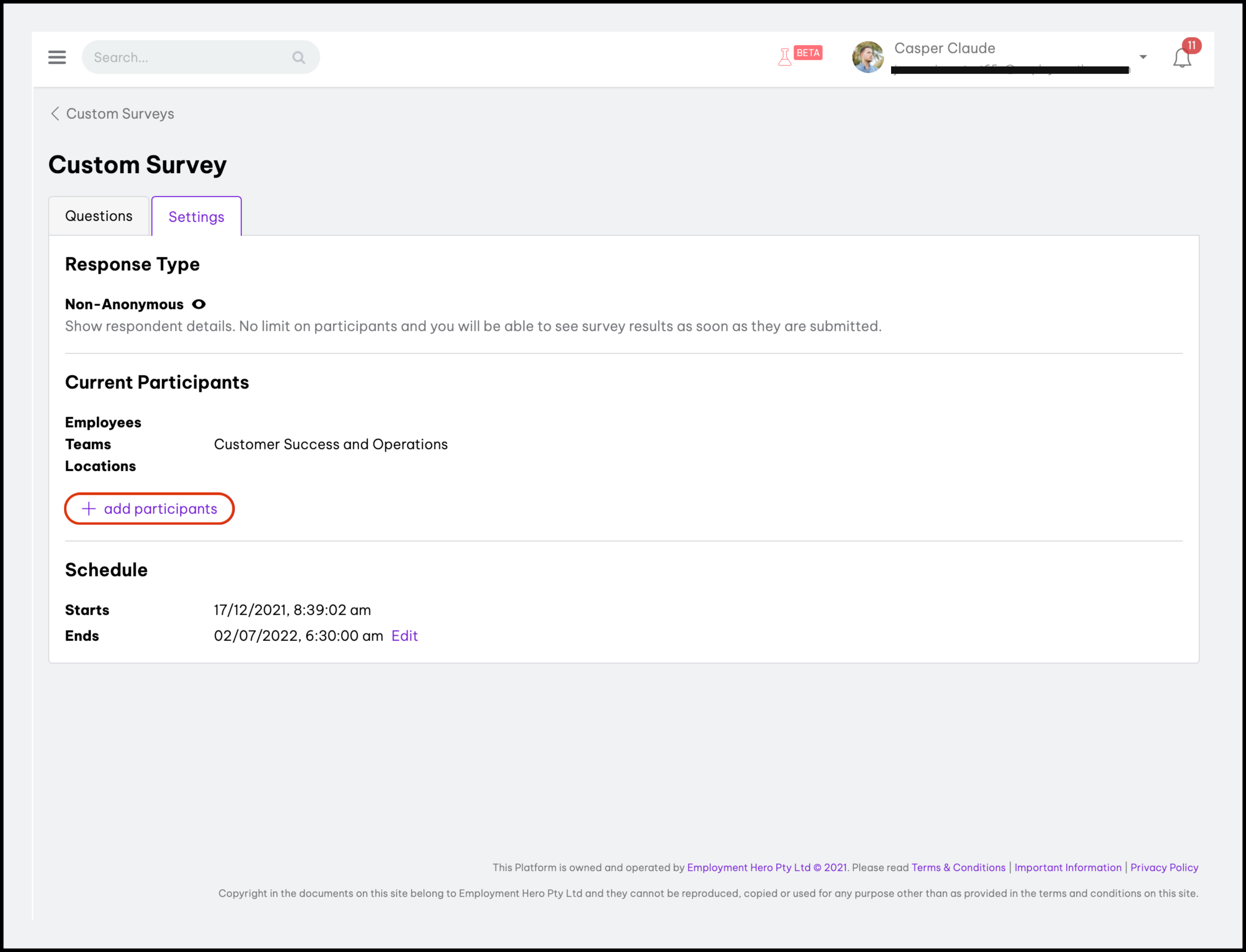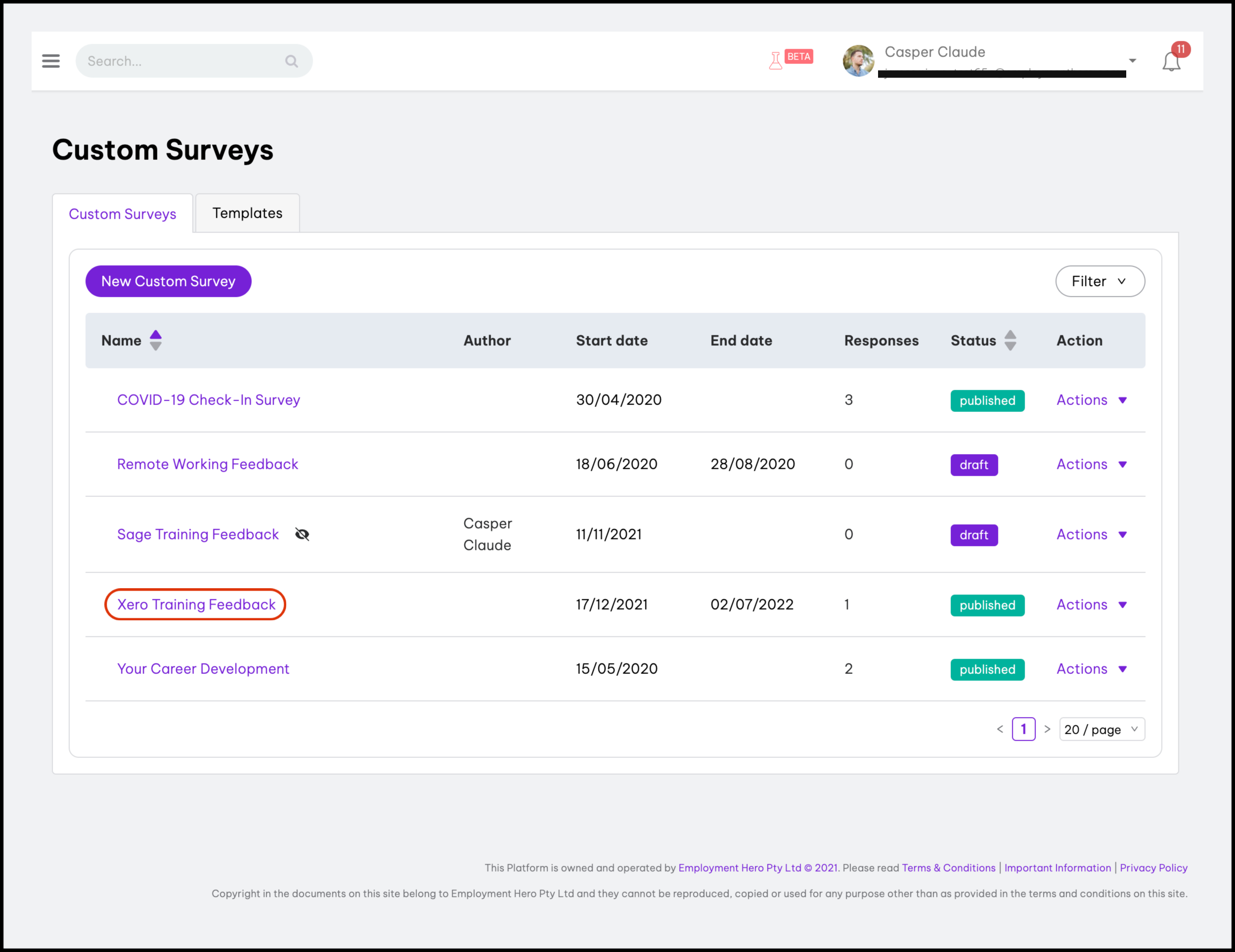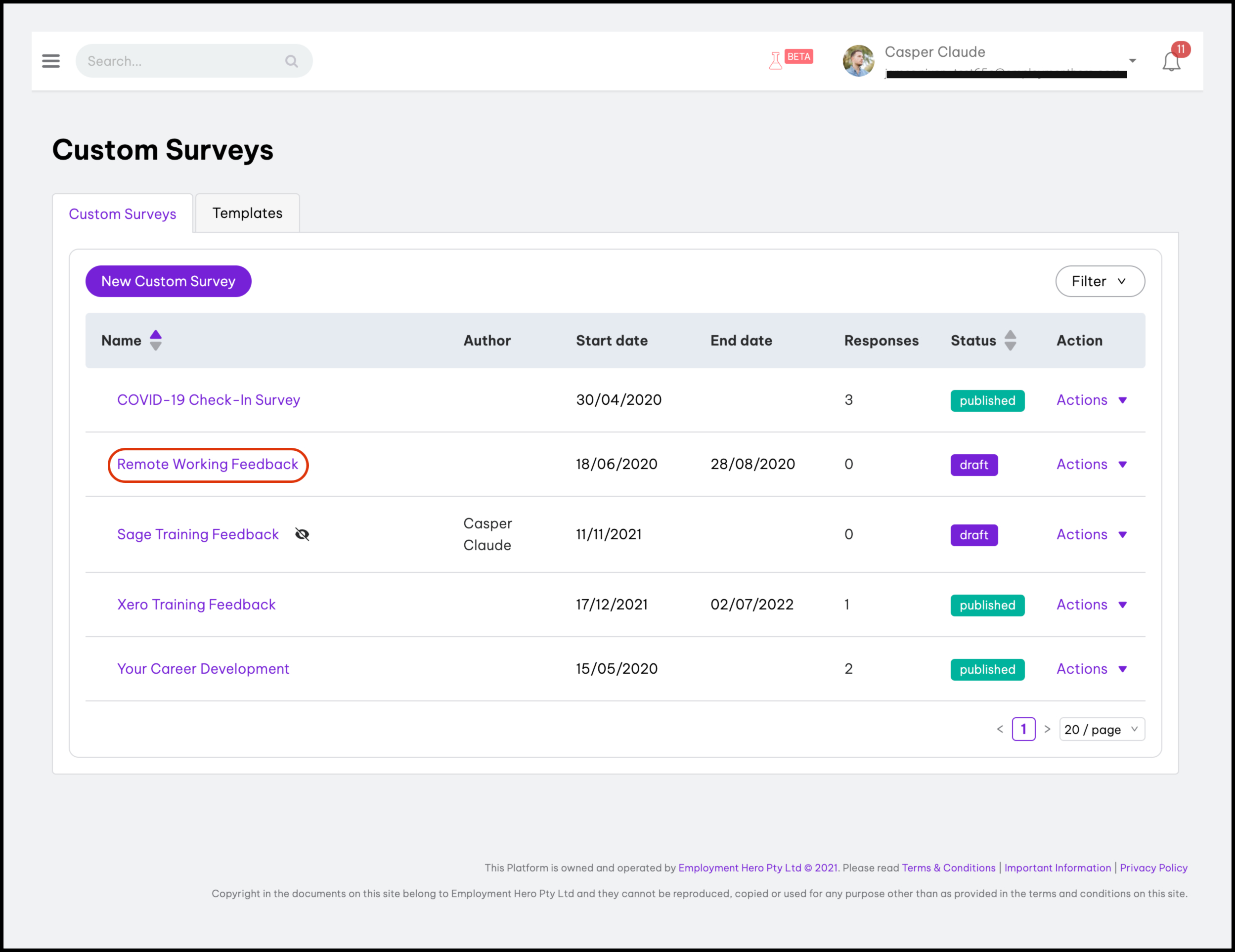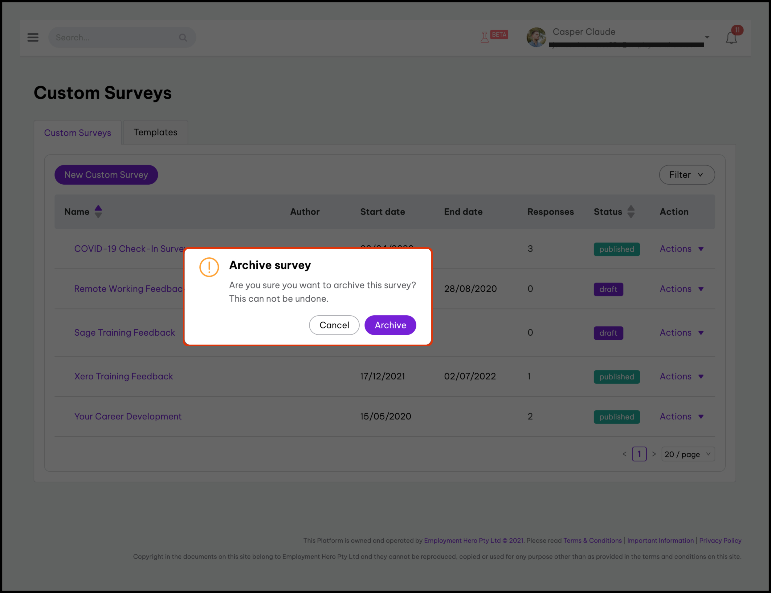 - Managing your exit surveys This feature allows you to create a one-off exit interview survey, choose the intended audience, and then send it on to those users.