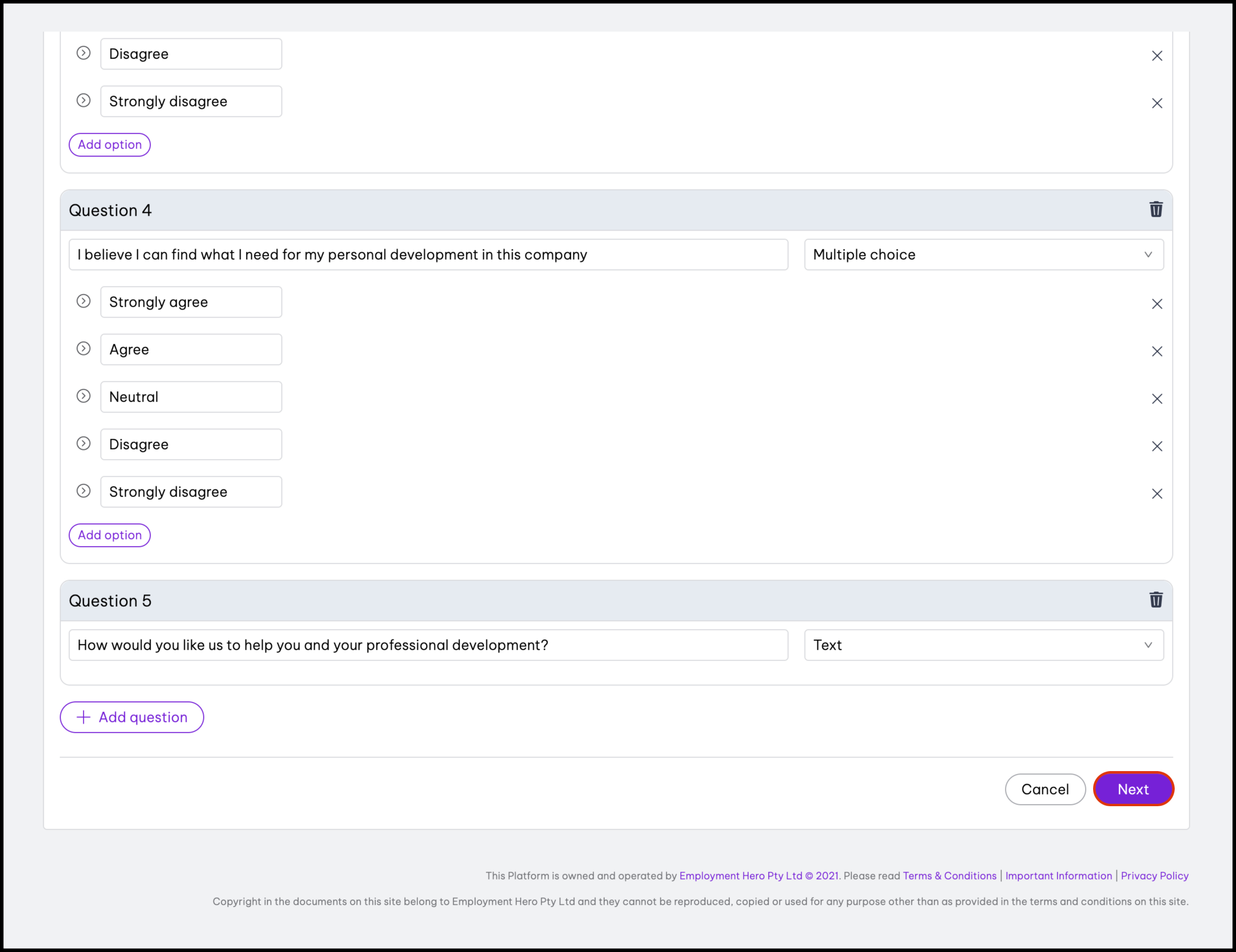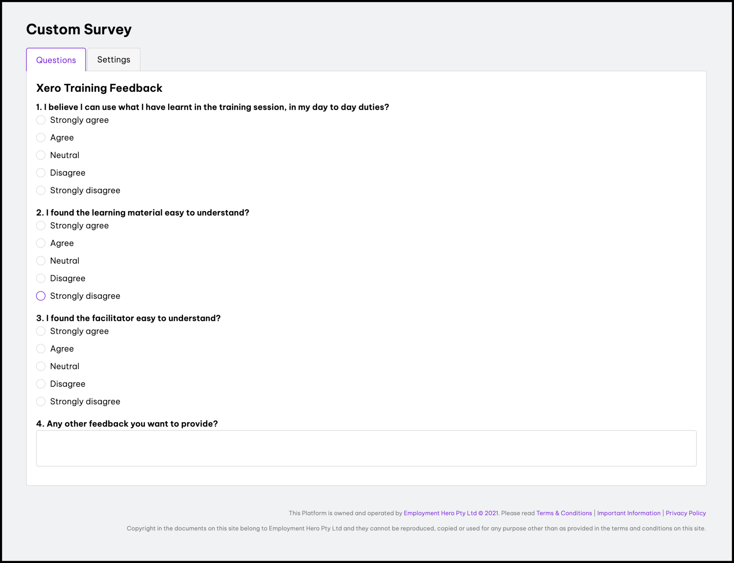 Click the Add Question button to add extra questions to your survey. There is no limit to the amount of questions you can add to your custom survey.