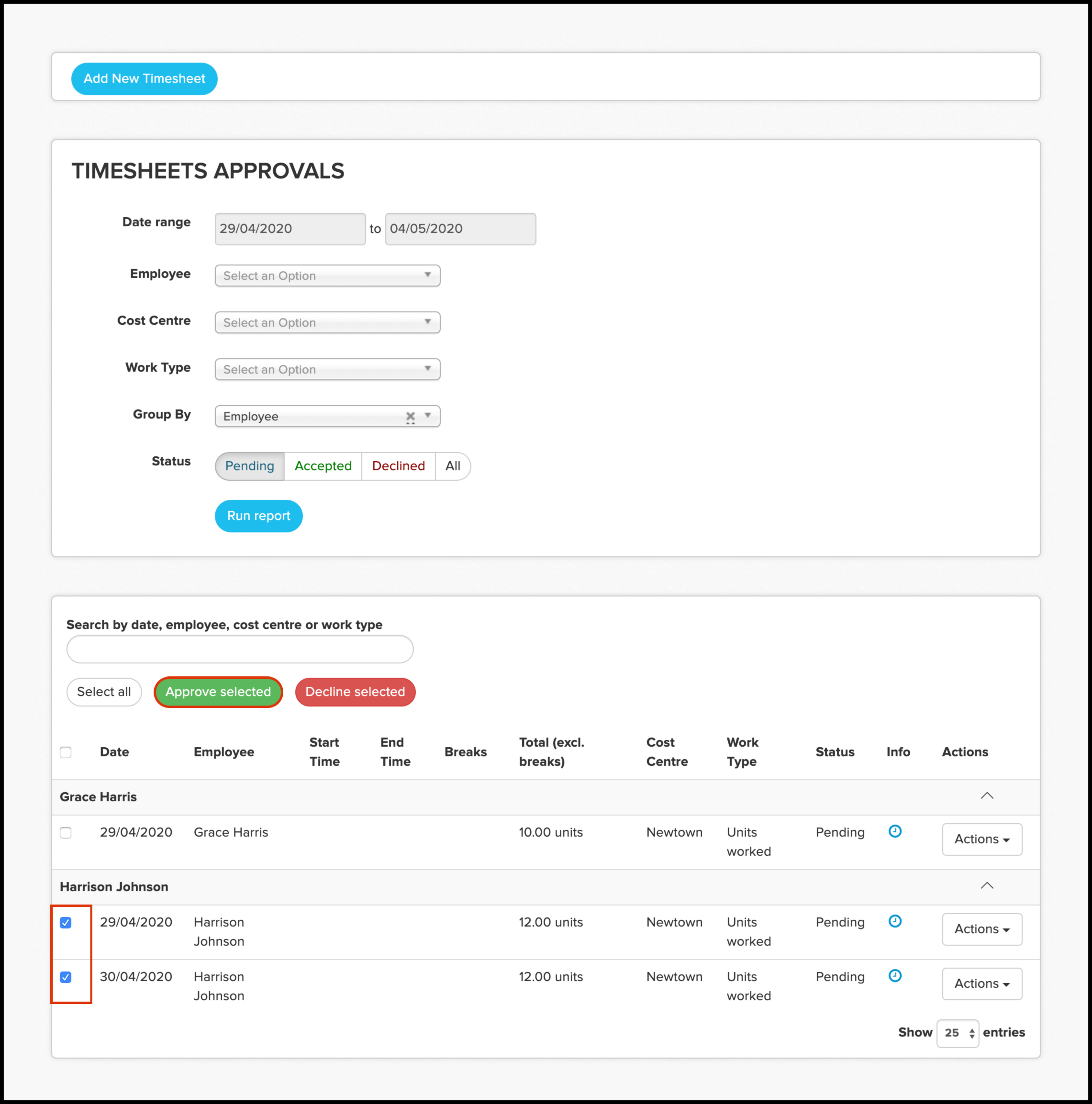 - Declined timesheets.