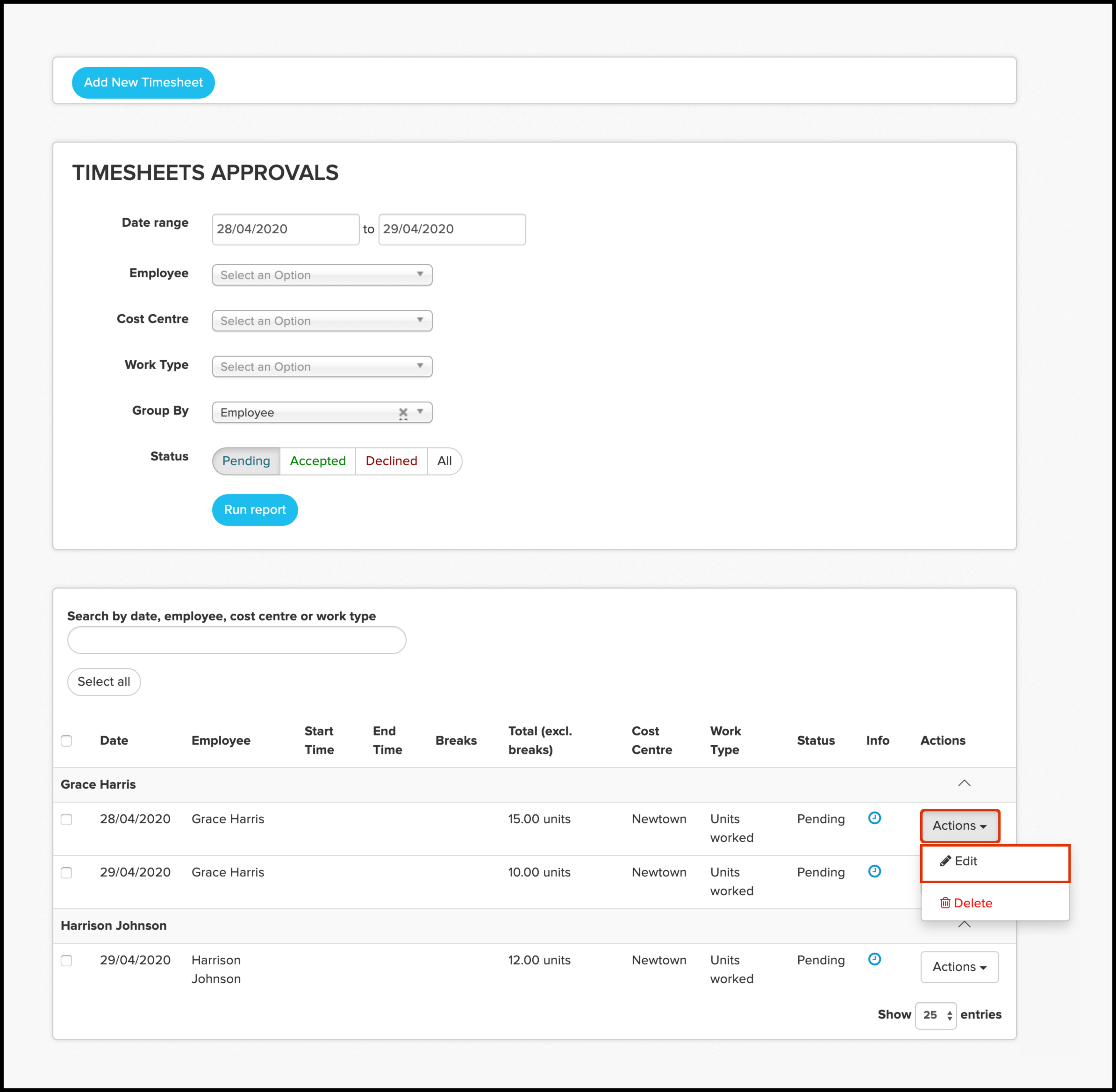 - Click the Add New Timesheet button.