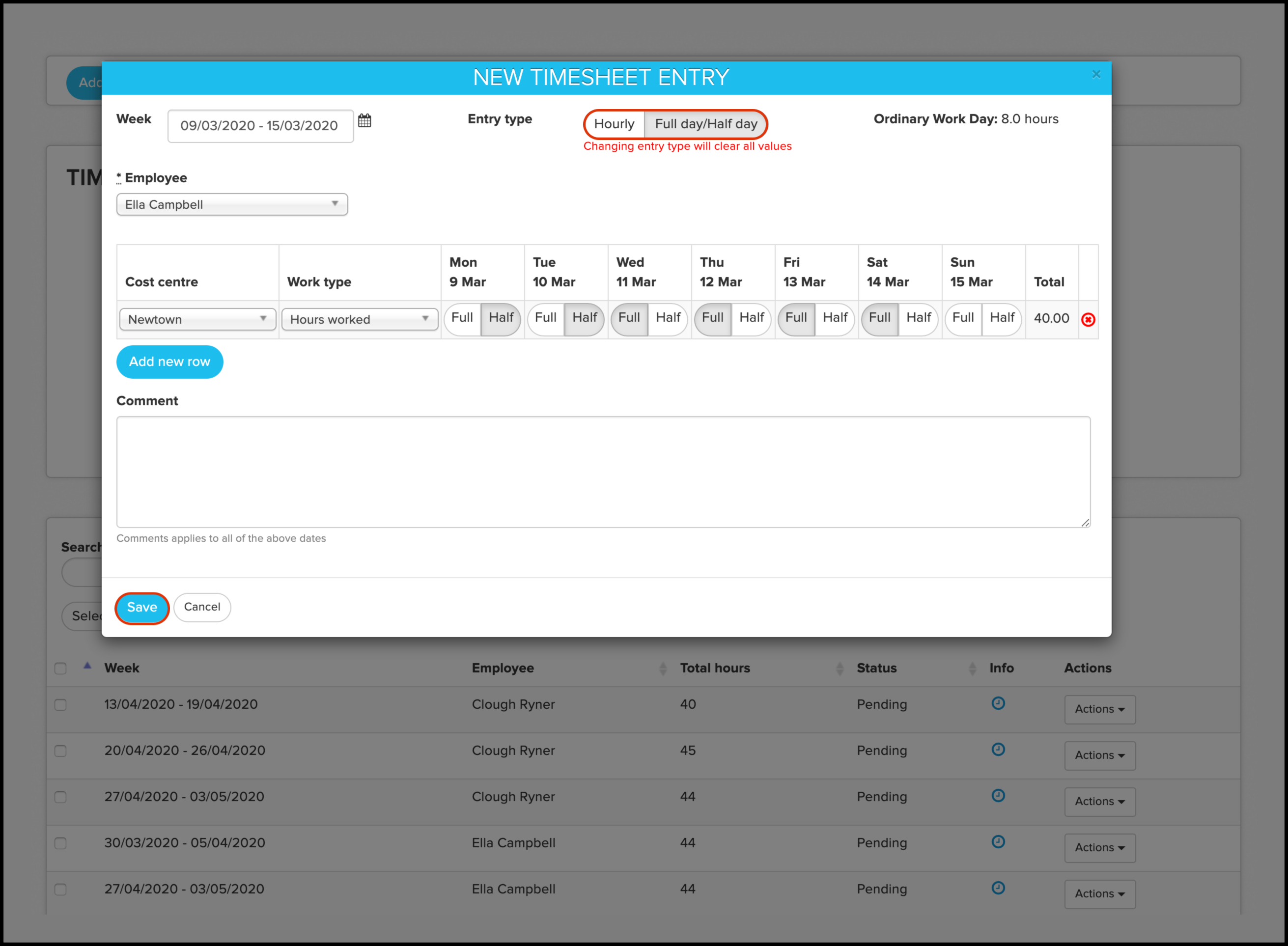 - Click the Add New Timesheet button.