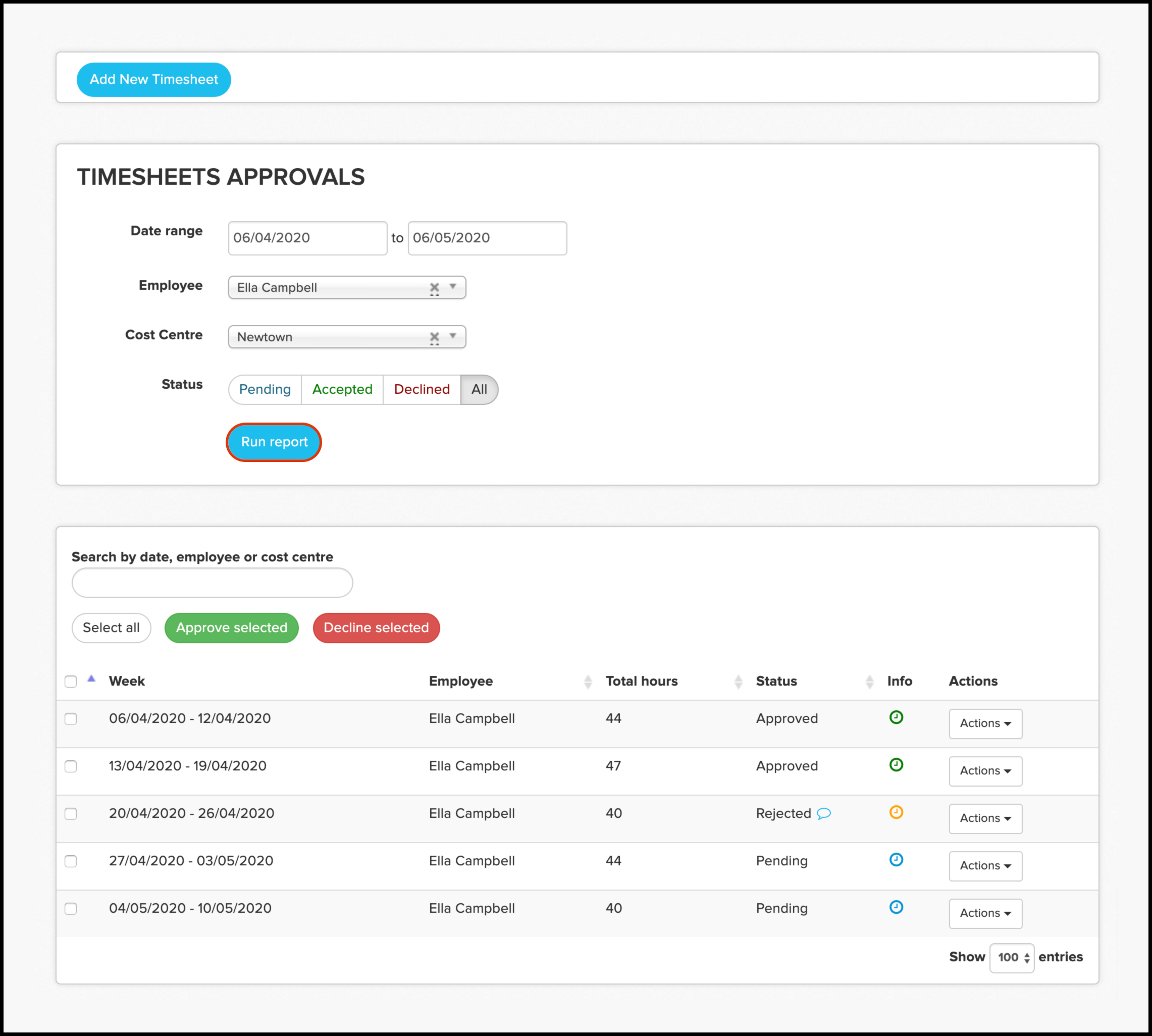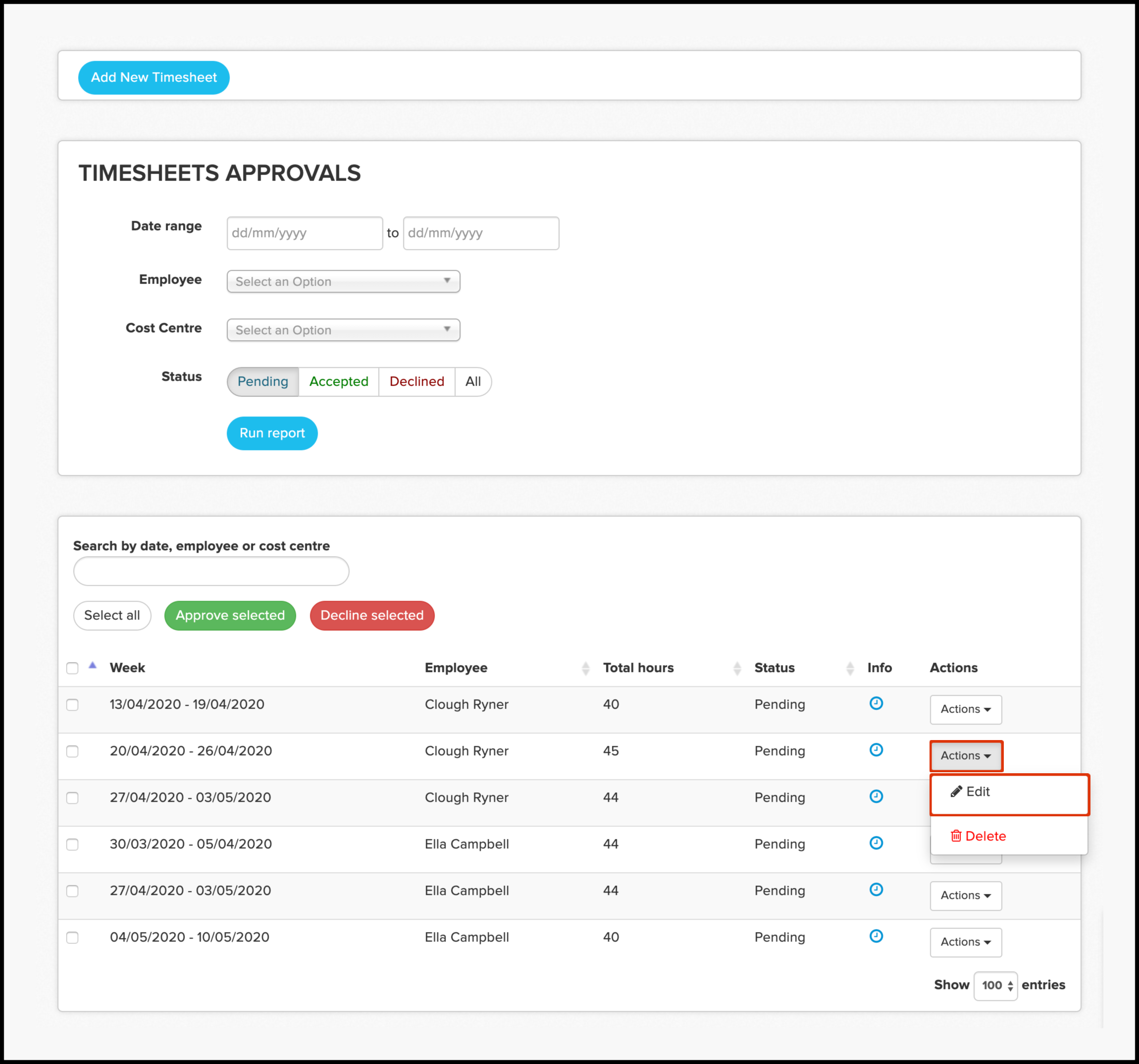 - Declined timesheets