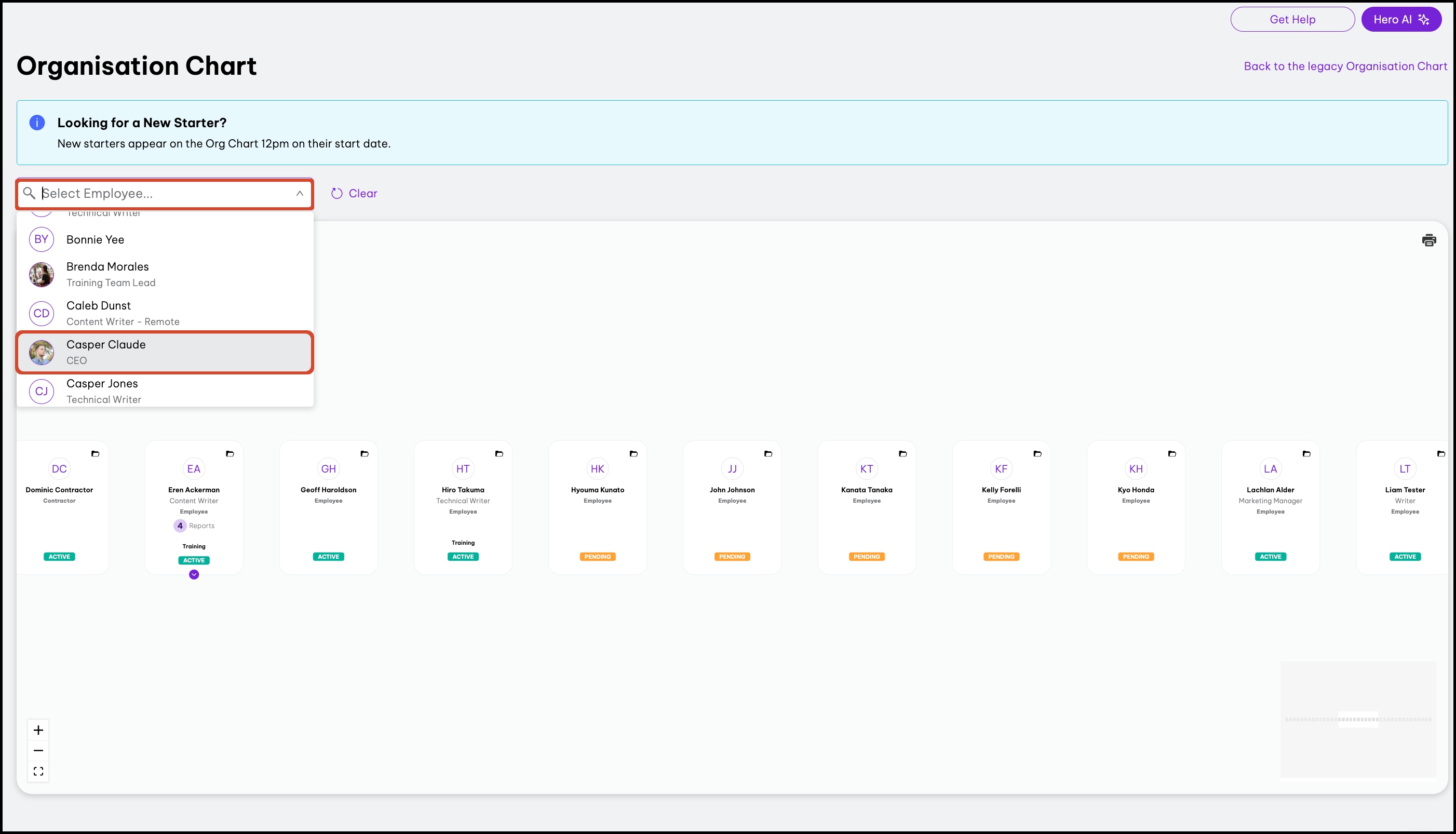- A new user will appear in your Organisation Chart from 12pm on their start date, rather than when they activate their Employment Hero account.