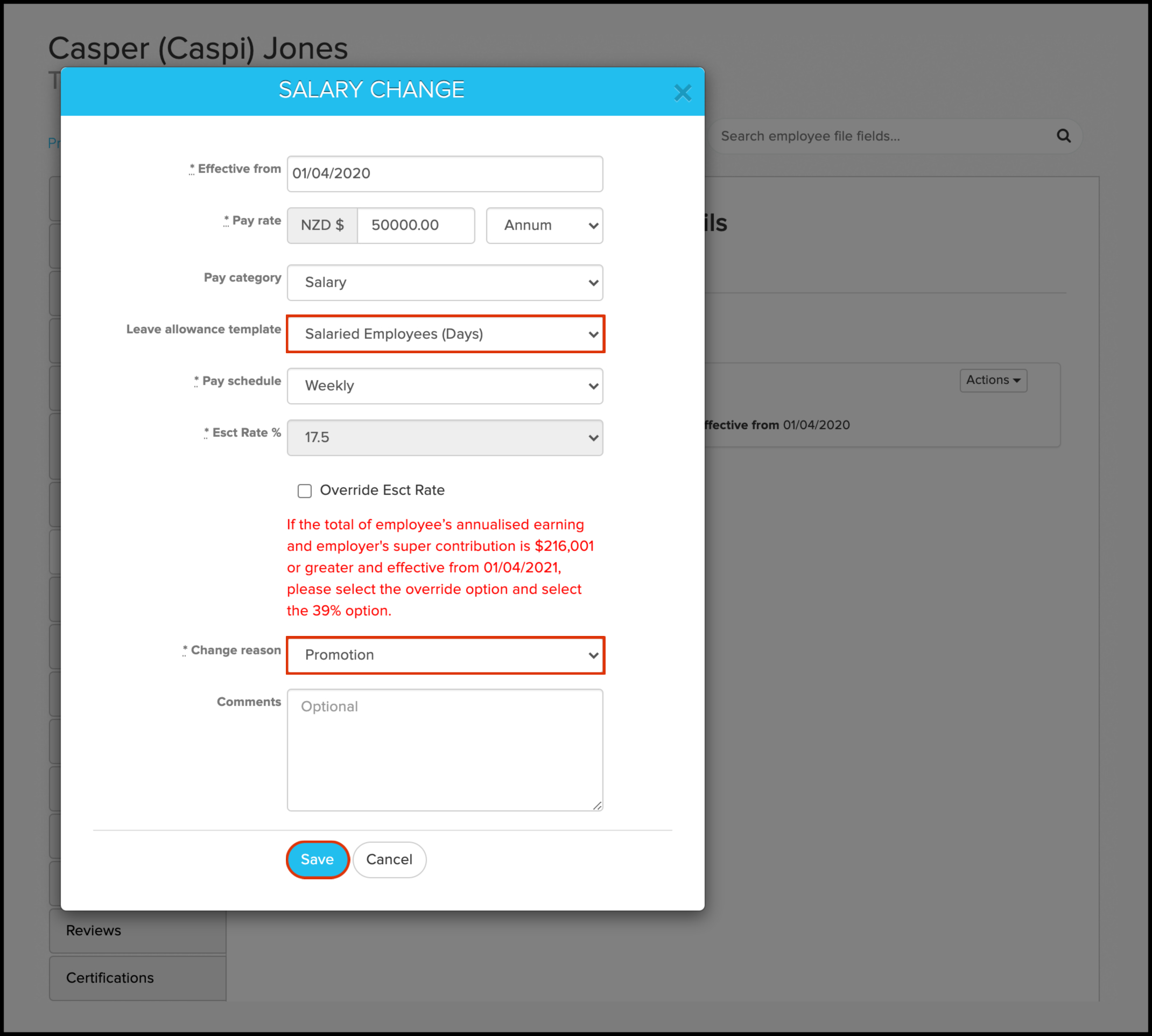 In order for you to apply the new leave allowance template to your employees, you will need to update their pay details. Once you have updated their details, the HR platform will automatically synchronise the changes with the payroll platform. The steps on how to undertake this are: