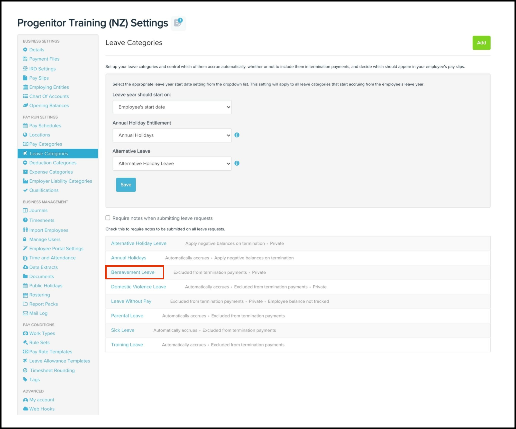 Leave Categories are totally managed through your payroll platform. Updates from payroll are now automated. However, Although the leave category now automatically syncs from Employment Hero Payroll to Employment Hero, you can attempt a manual sync of pay items by going to General > Settings > Add on > Action > Update > Pay item > Update From Payroll.