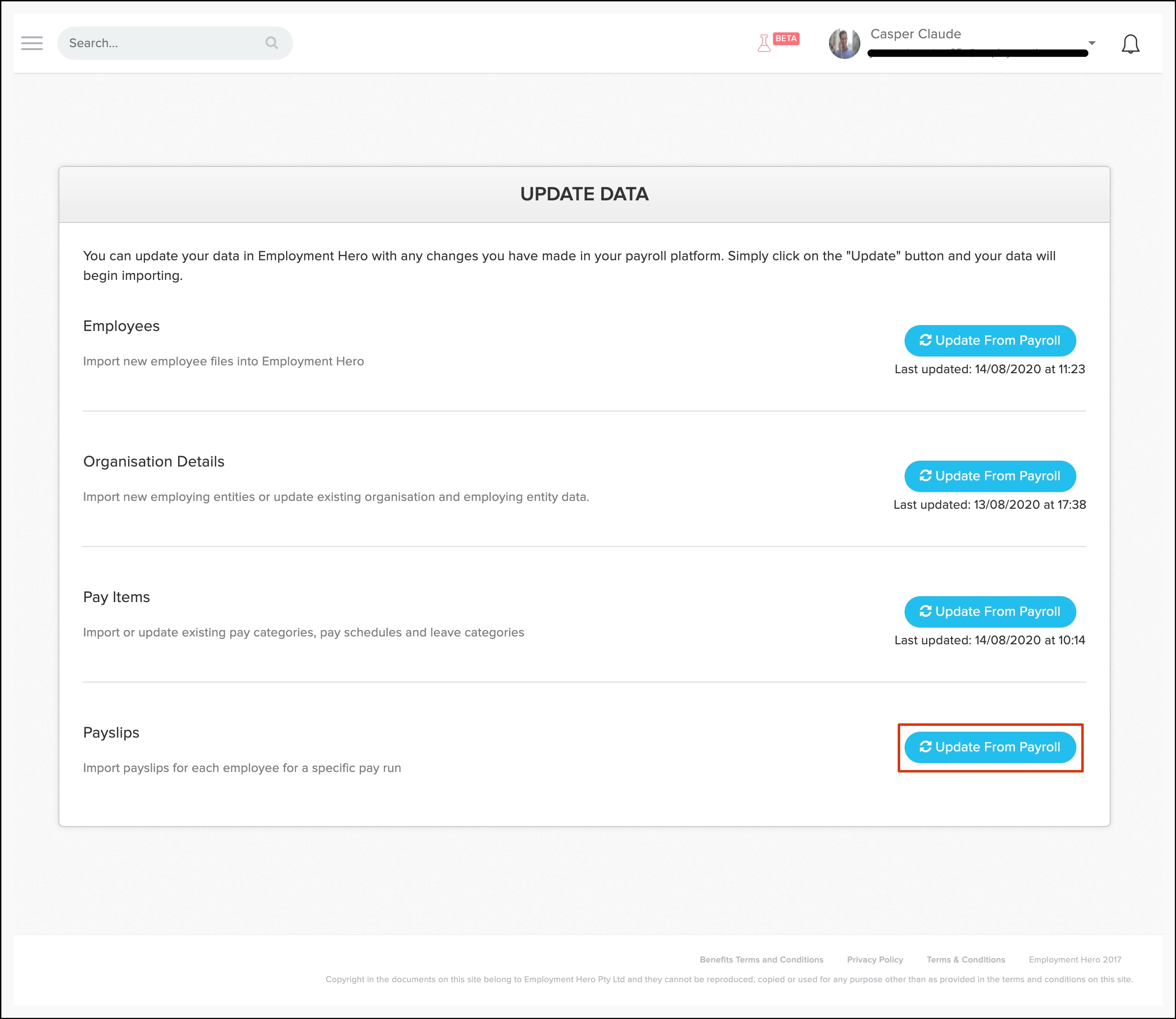 - Click the Update from Payroll button.