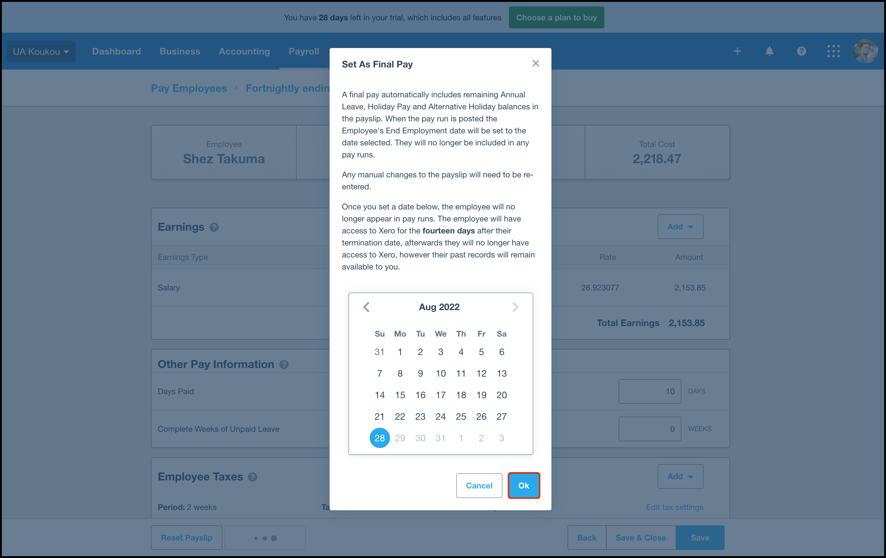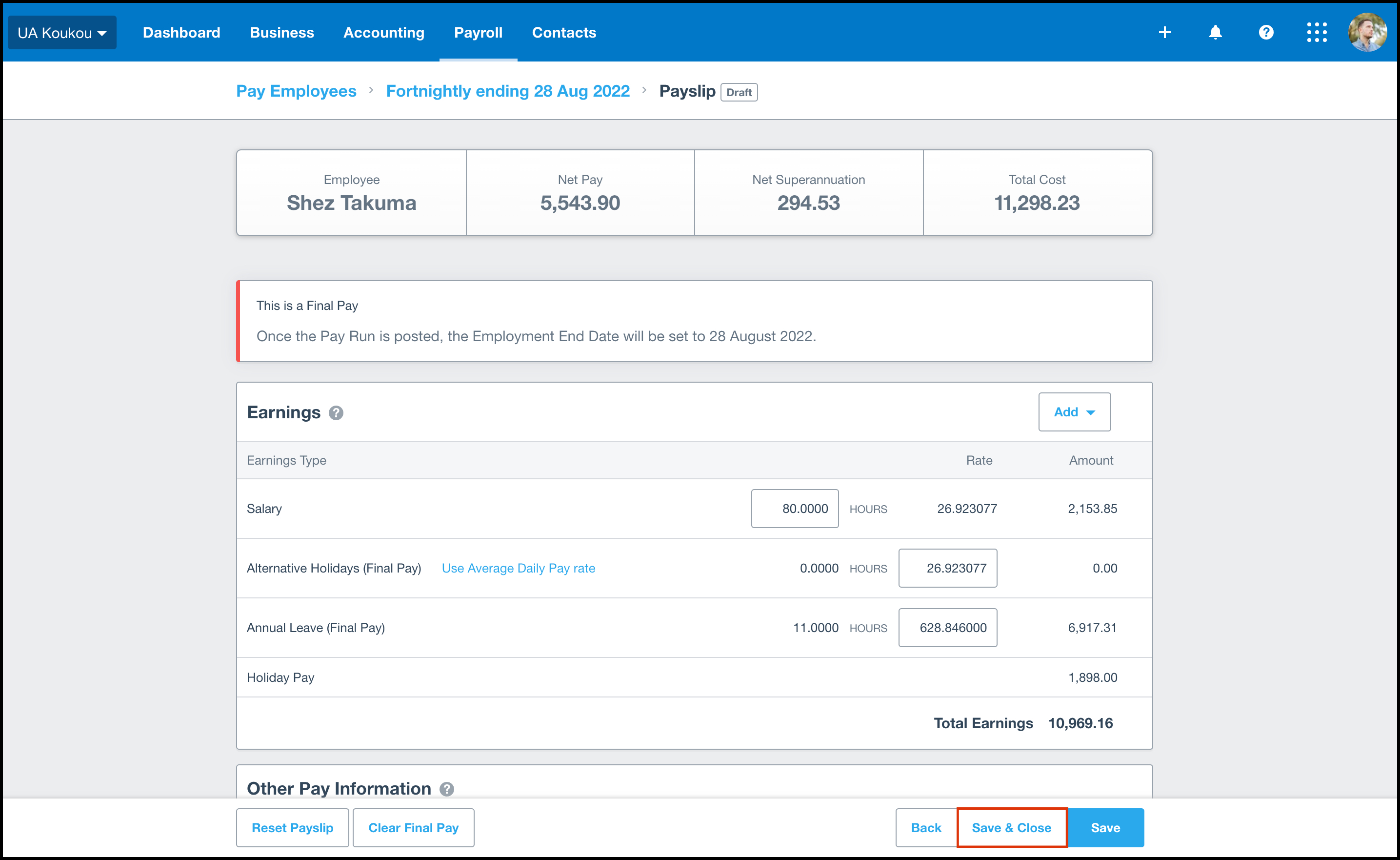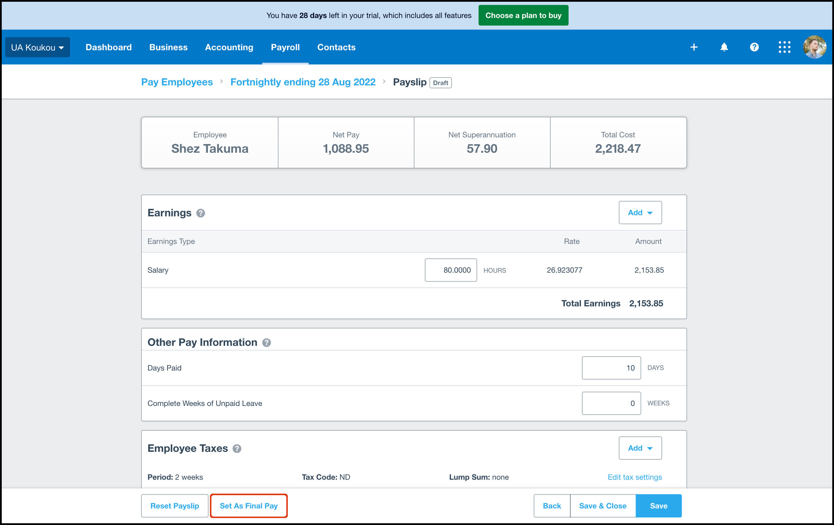 - Click the Set as Final Pay button.