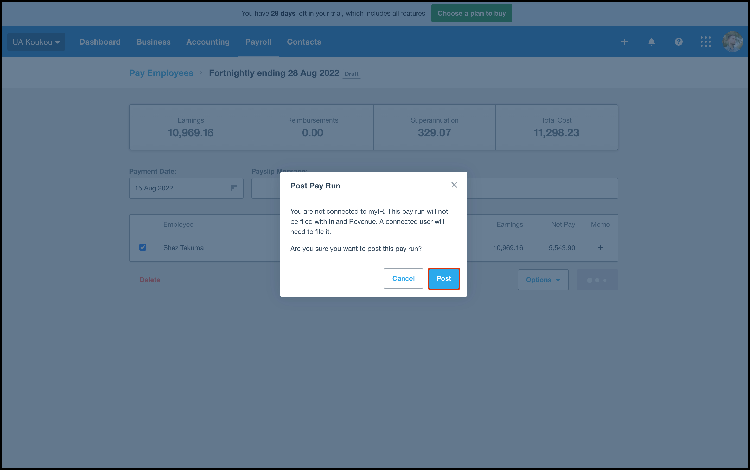 - Click on the Payroll button.