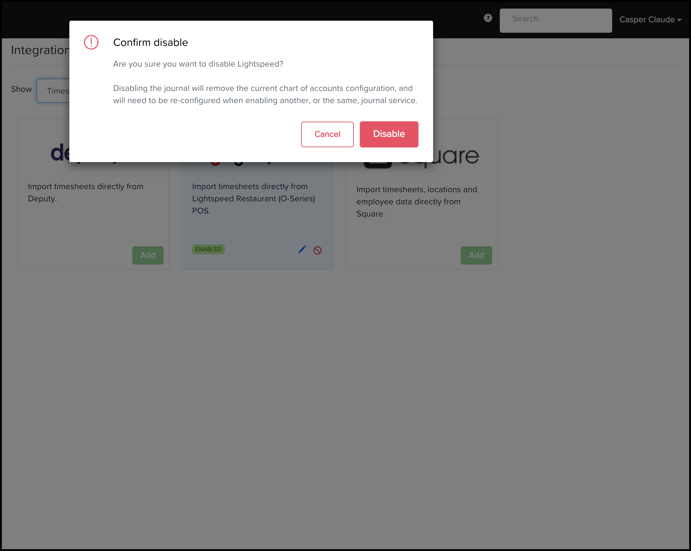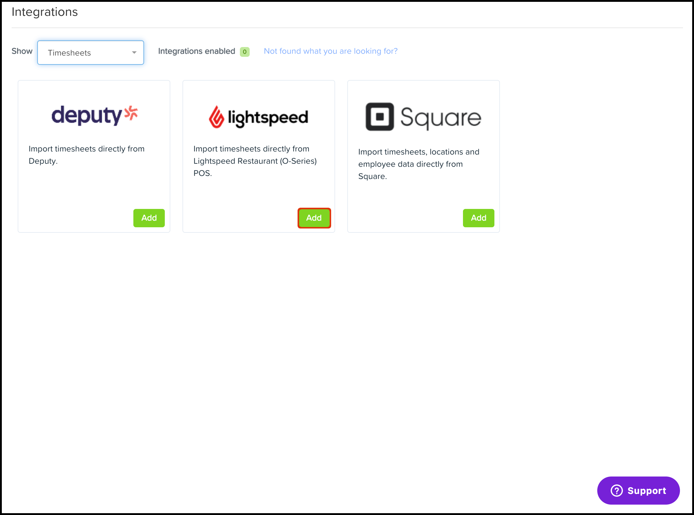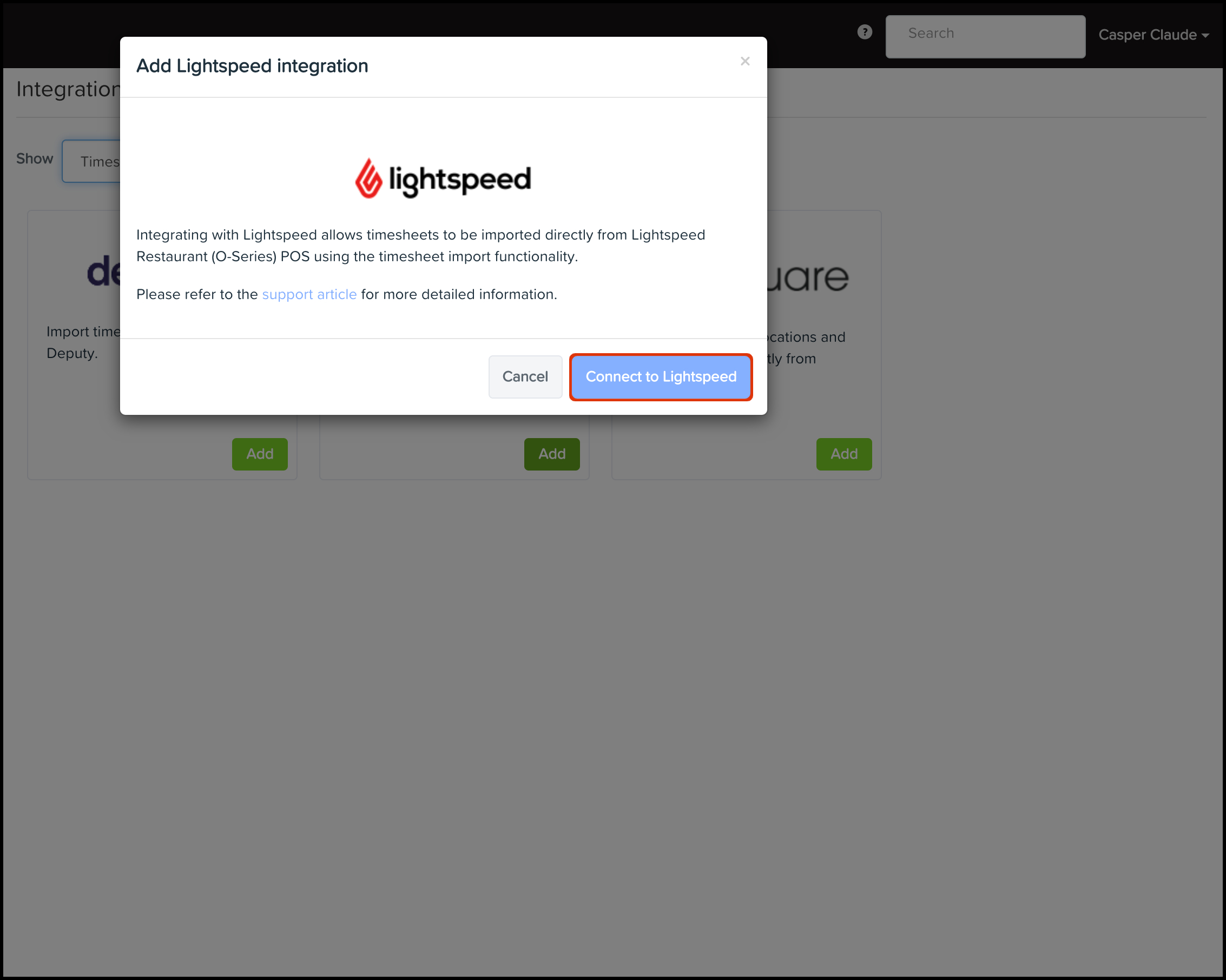 - Select the Lightspeed POS option in the Import Timesheets drop-down.