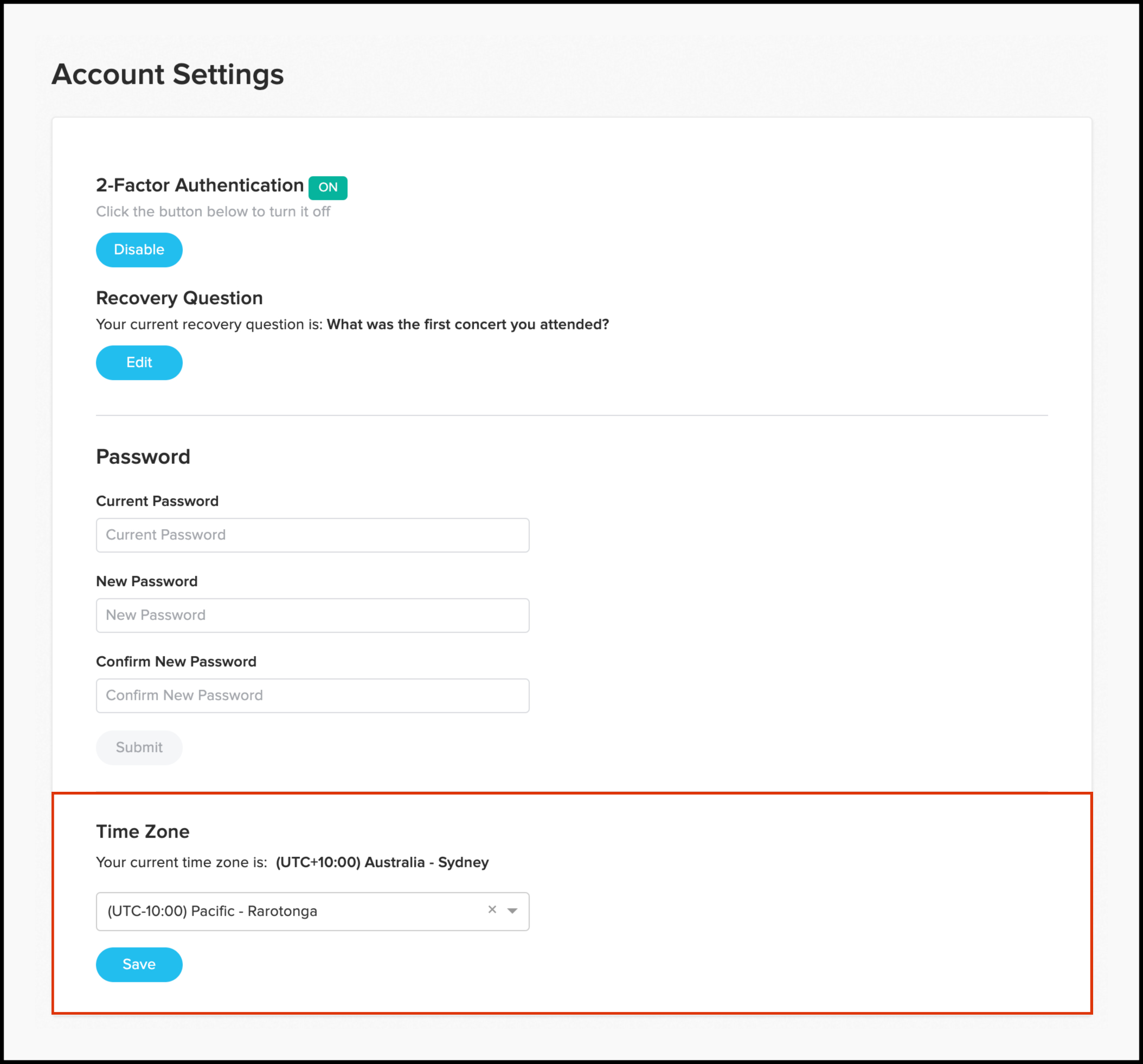 Set my account time zone James Nixon Updated 11 March 2025 03:35 EH Content Team Share Available for the following plans: Employment Plus, Employment UnlimitedAvailable for the following HR plans: Premium, PlatinumQuestion How can set my account time zone? Answer You can set your account time zone from the Account Security section of the HR classic platform. Setting my account time zone Click the User drop-down. Click on the Account Settings button. In the Time Zone drop-down enter your current time zone. Click the Save button. Related to: premium platinum standard free hr