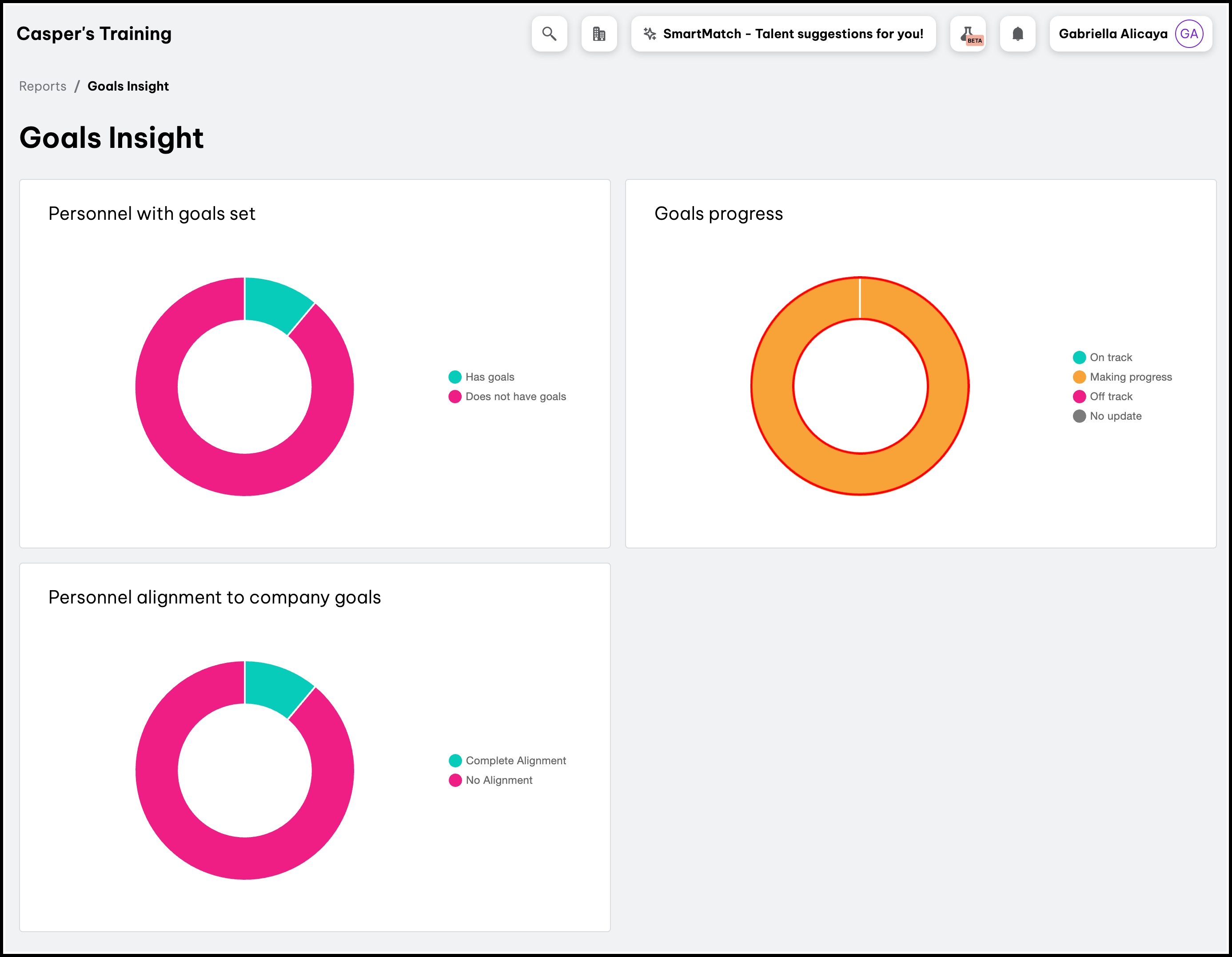 - Employee company goal alignment reporting | HR Web Platform This feature allows you to create a report on the individual and team goals in alignment with your overall company goals.