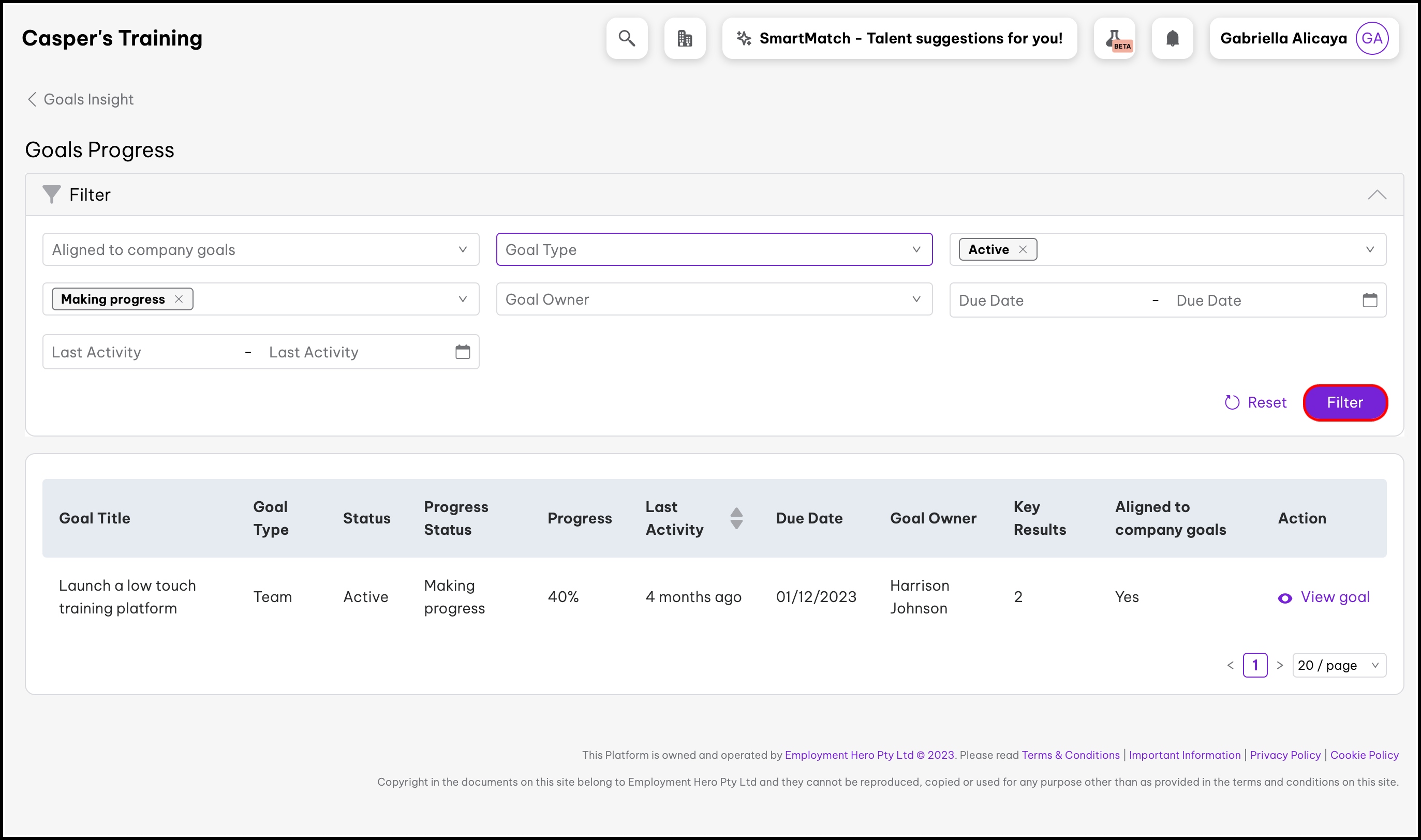 - Click the View goal button.