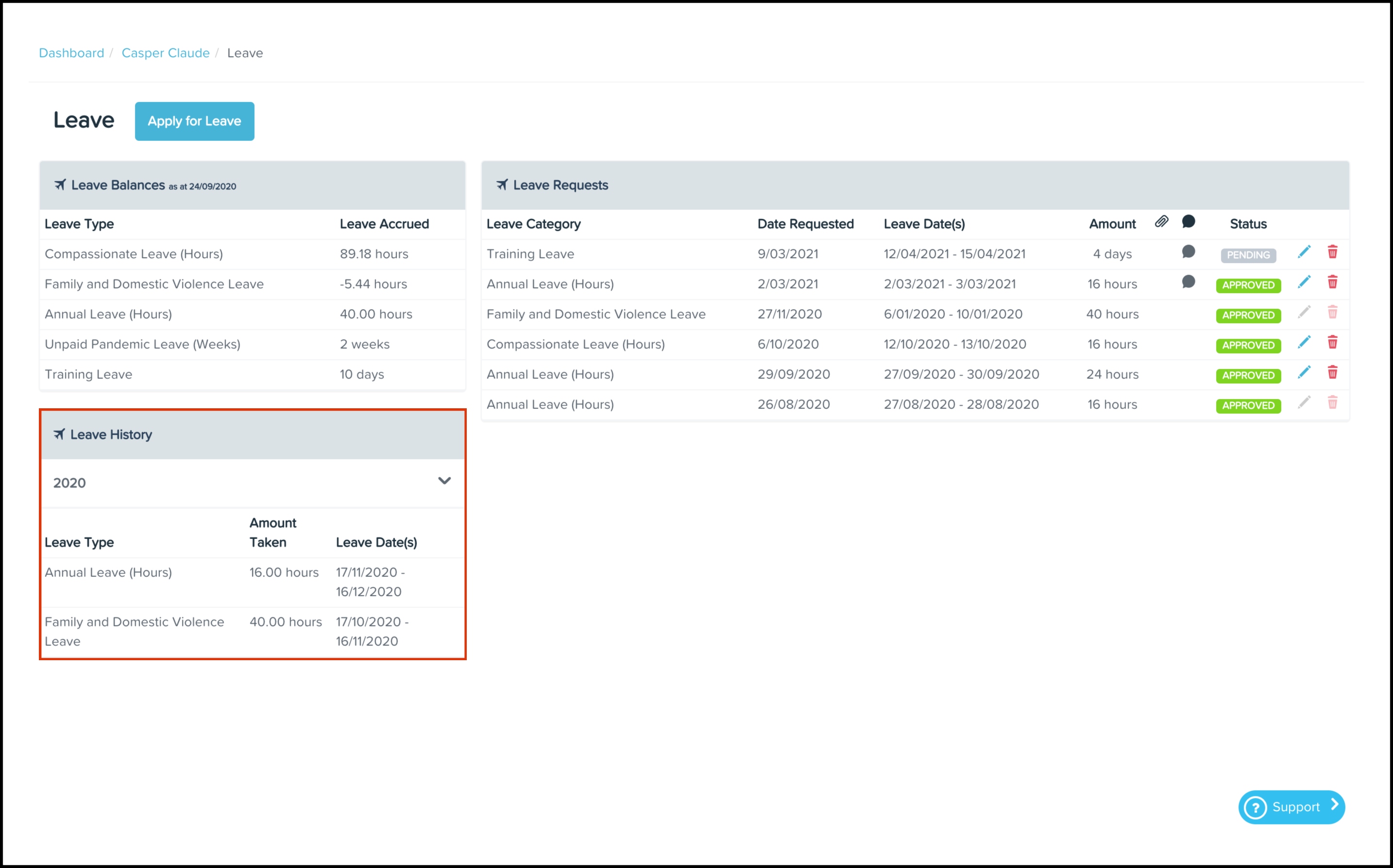 Note: You can only edit your leave request if your payroll admin has not applied it (even just partially) in a pay run.