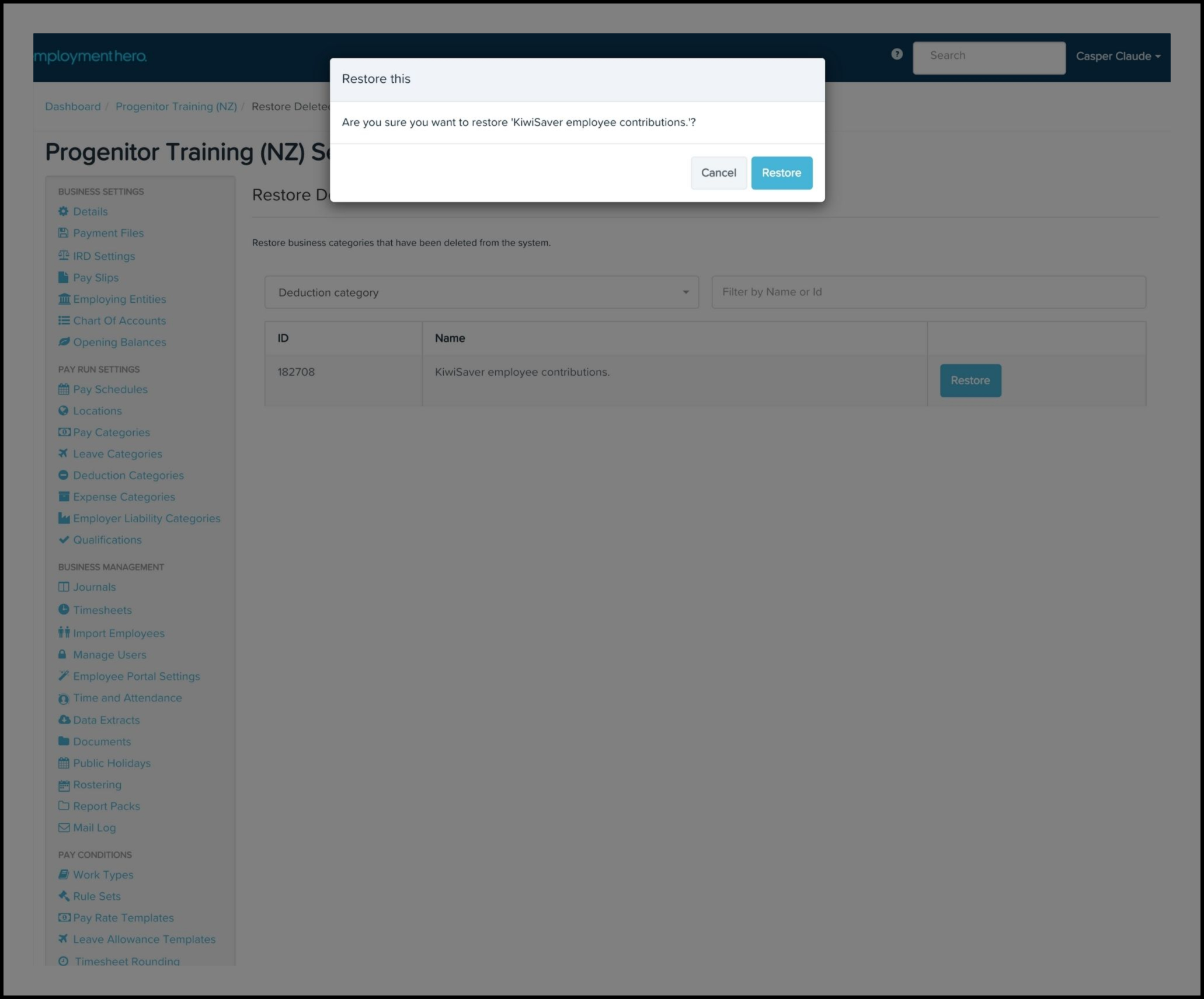 Inadvertently deleting certain business settings can have huge unintended consequences. If this happens within your payroll classic platform, you can restore a range of these settings via the Restore Deleted Items feature.