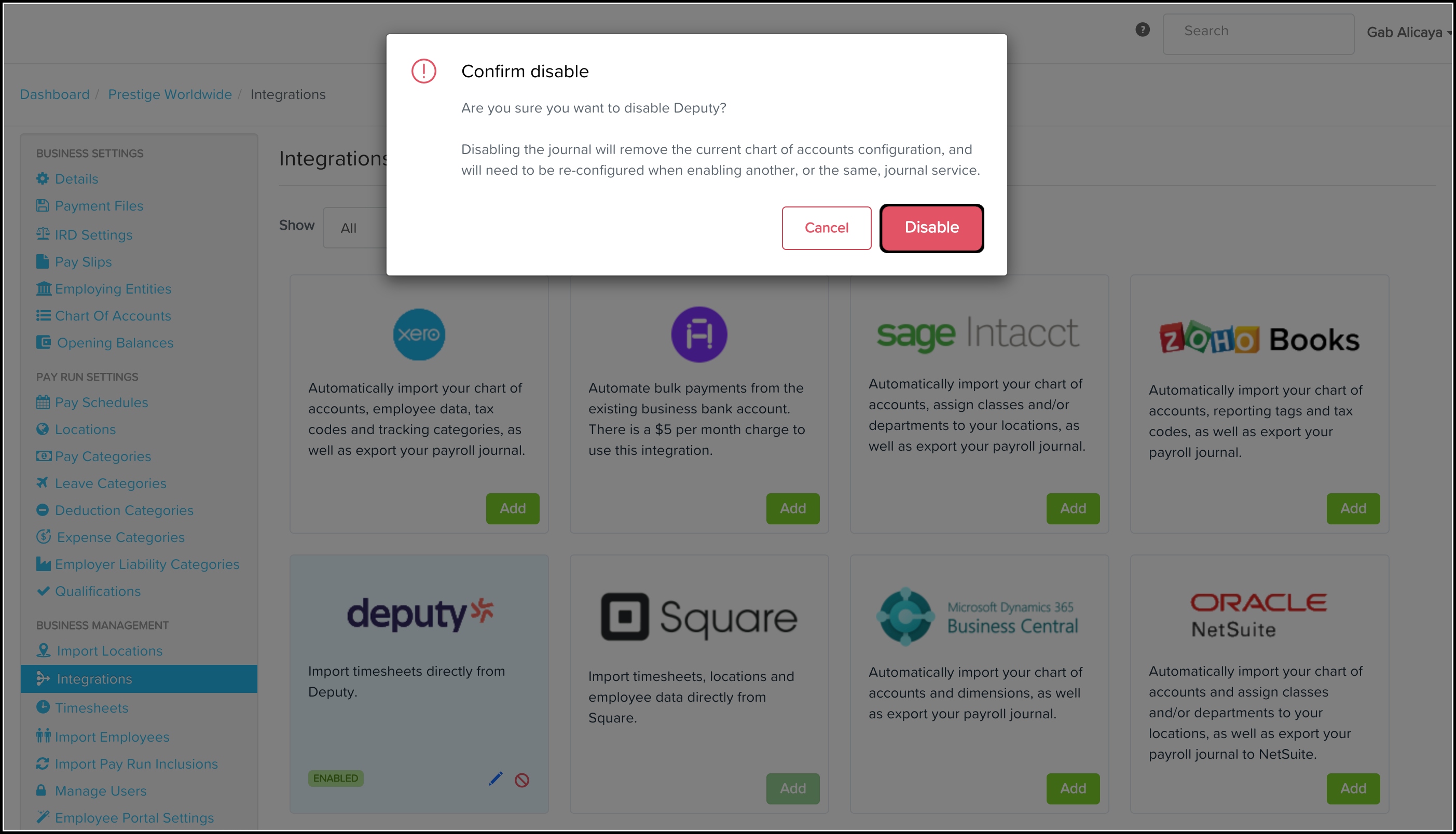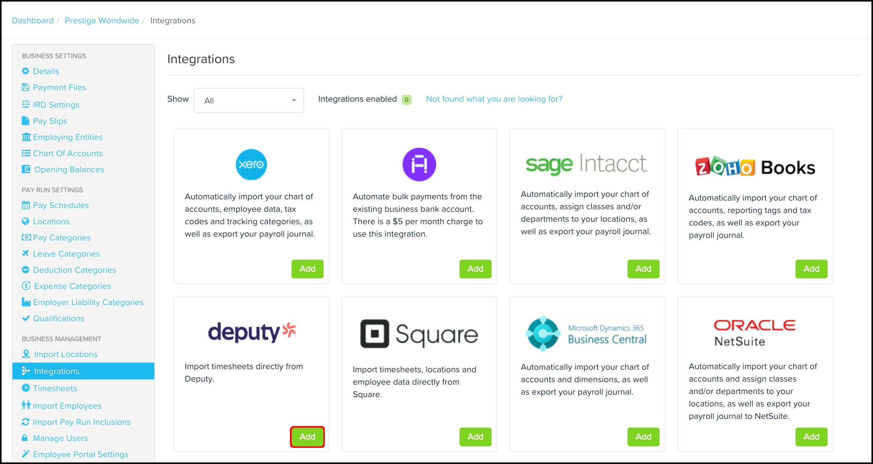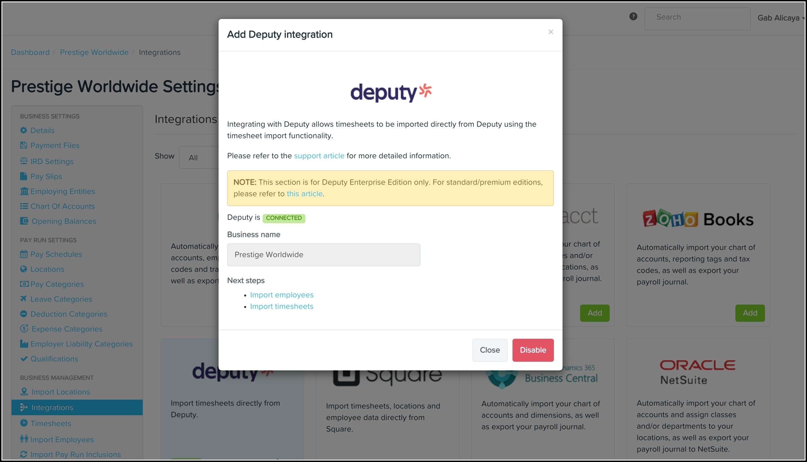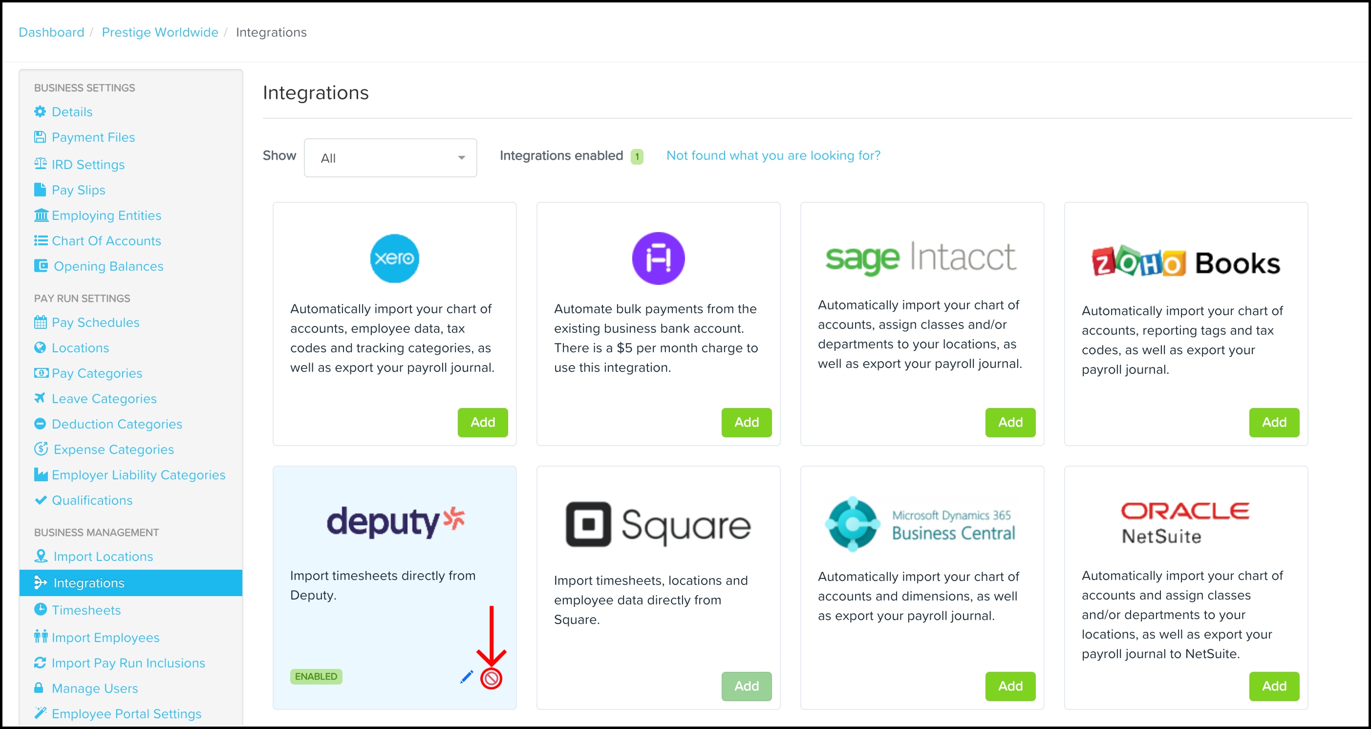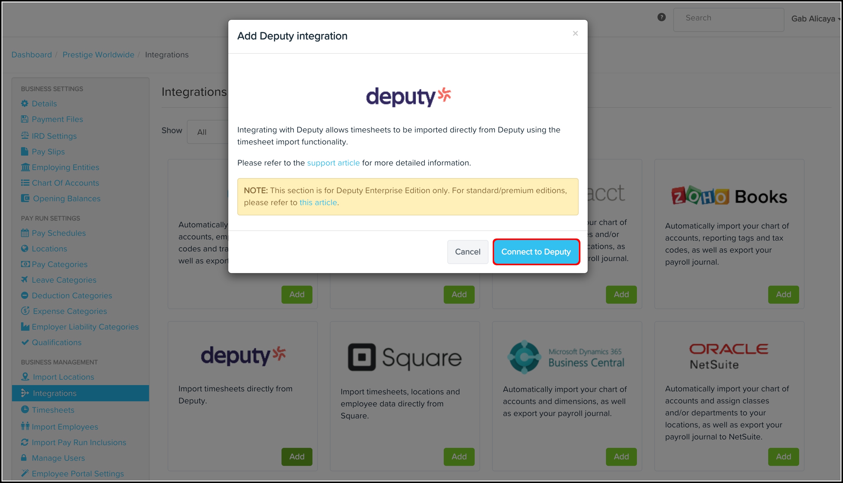 - Select your Deputy business to be integrated with the Payroll classic platform.