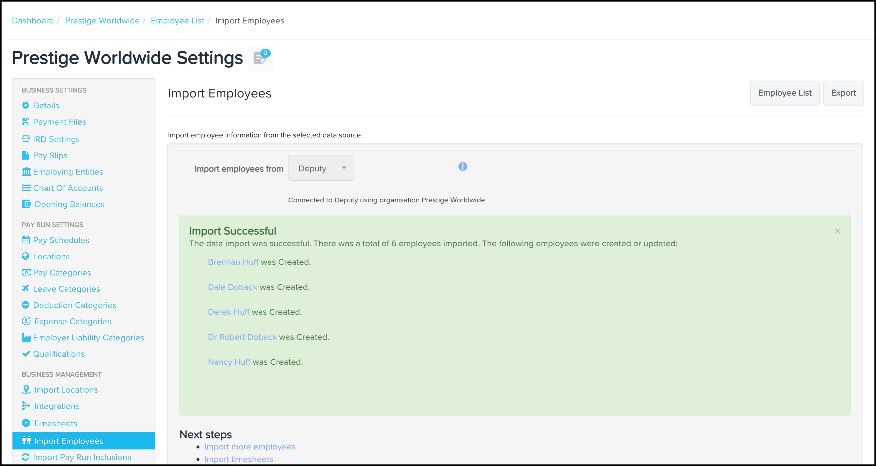 Your Employment Hero Payroll classic platform is now connected to your Deputy Enterprise platform.