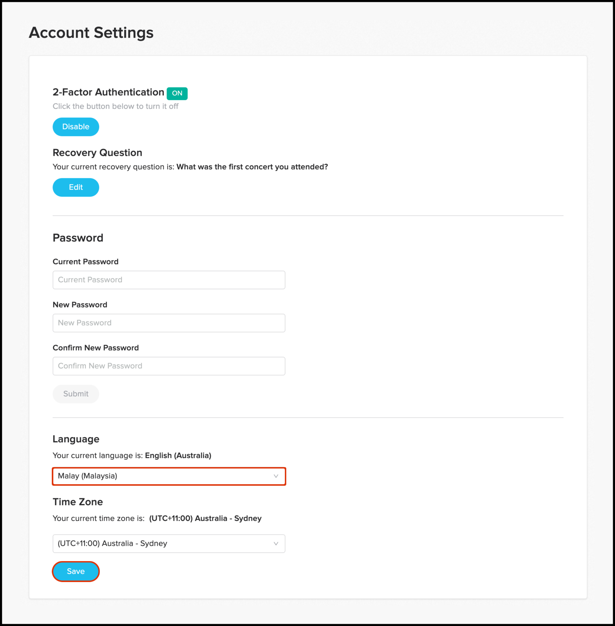 You can set your account language by accessing the Account Settings section of the HR classic platform, as shown in the following instructions: