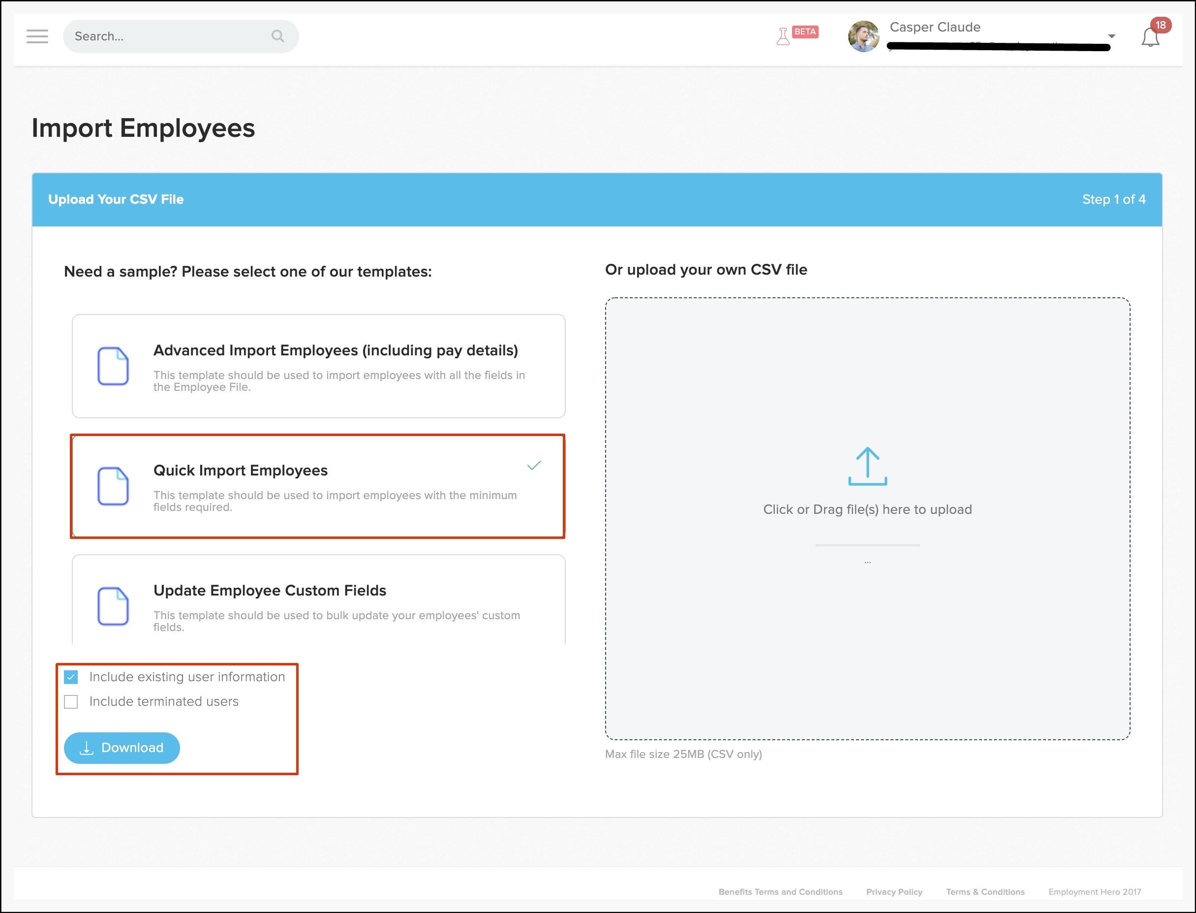 An alternative that is available to all HR plans is simply using the Import Employees feature to download from a range of templates with varying data fields. The feature can save you time and make sure your platform has the correct data loaded whilst offering you documentation that you can manipulate, update, and import once revised.