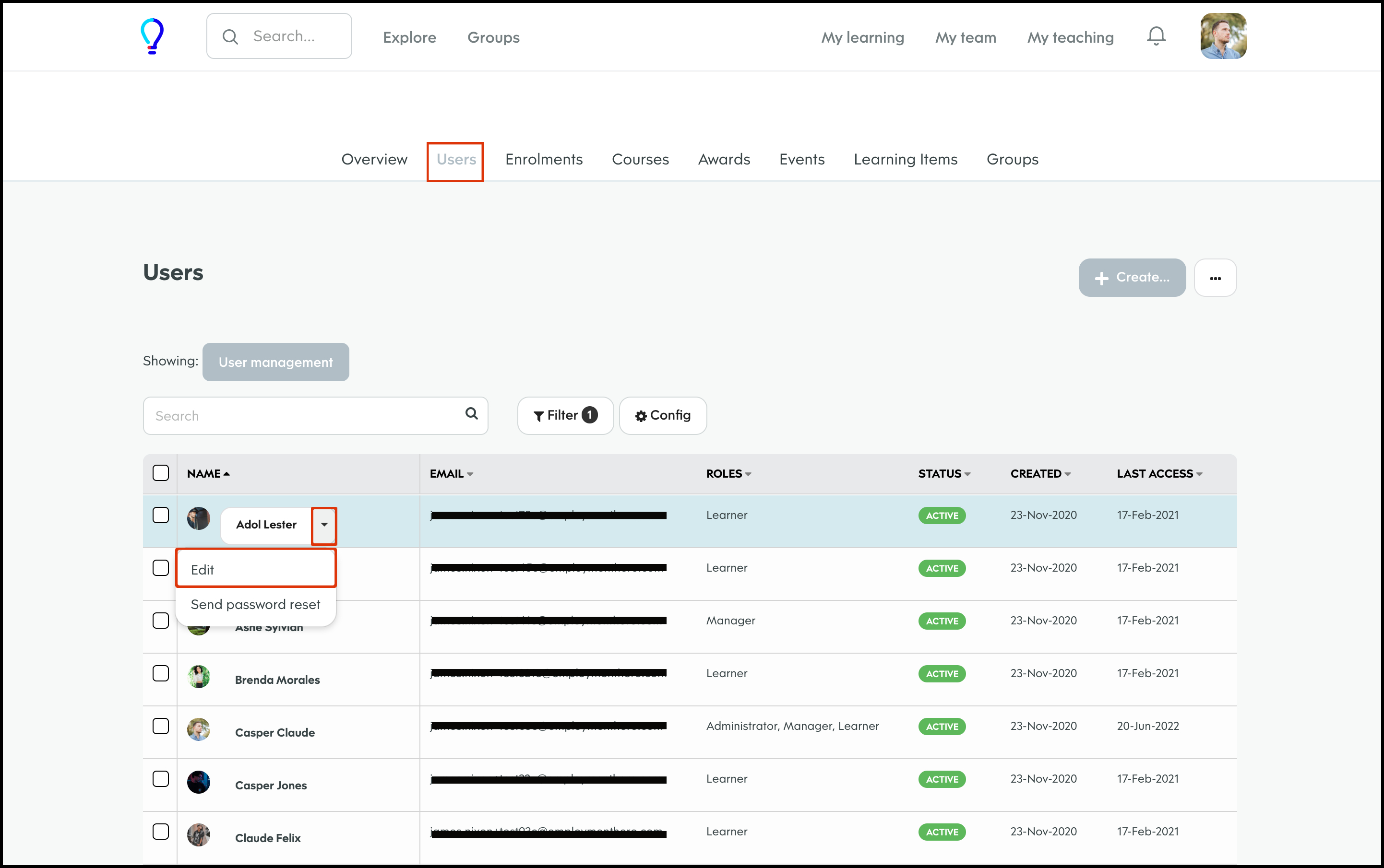 - User access comparison for the Learning platform This comparison article will walk you through the different Learning platform access levels you can grant your employees.