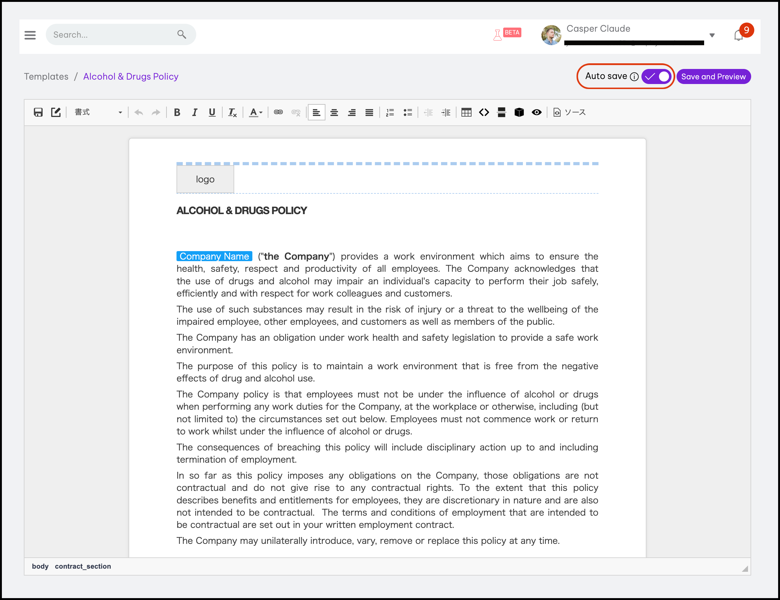 You can toggle on the Auto Save switch within the Advacned Template Management module to enable auto-saving on your document. The toggle will reset when you leave your template editing page, i.e. if you enable it and then leave the page and come back again, it will be off by default again.