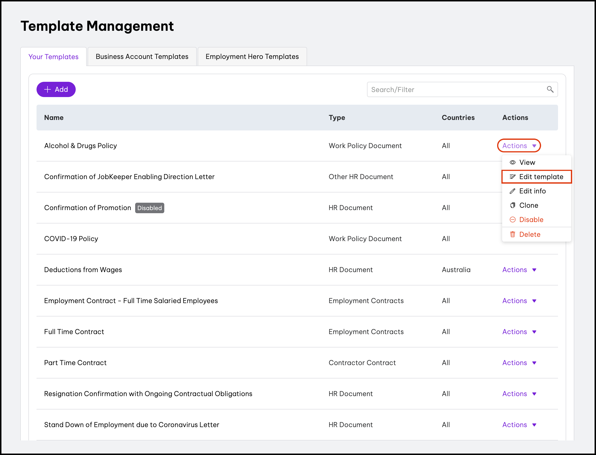 - HR platform: Policy management This feature allows you to choose from Employment Hero's pre-made content or upload your own documents and then share it with your employees.