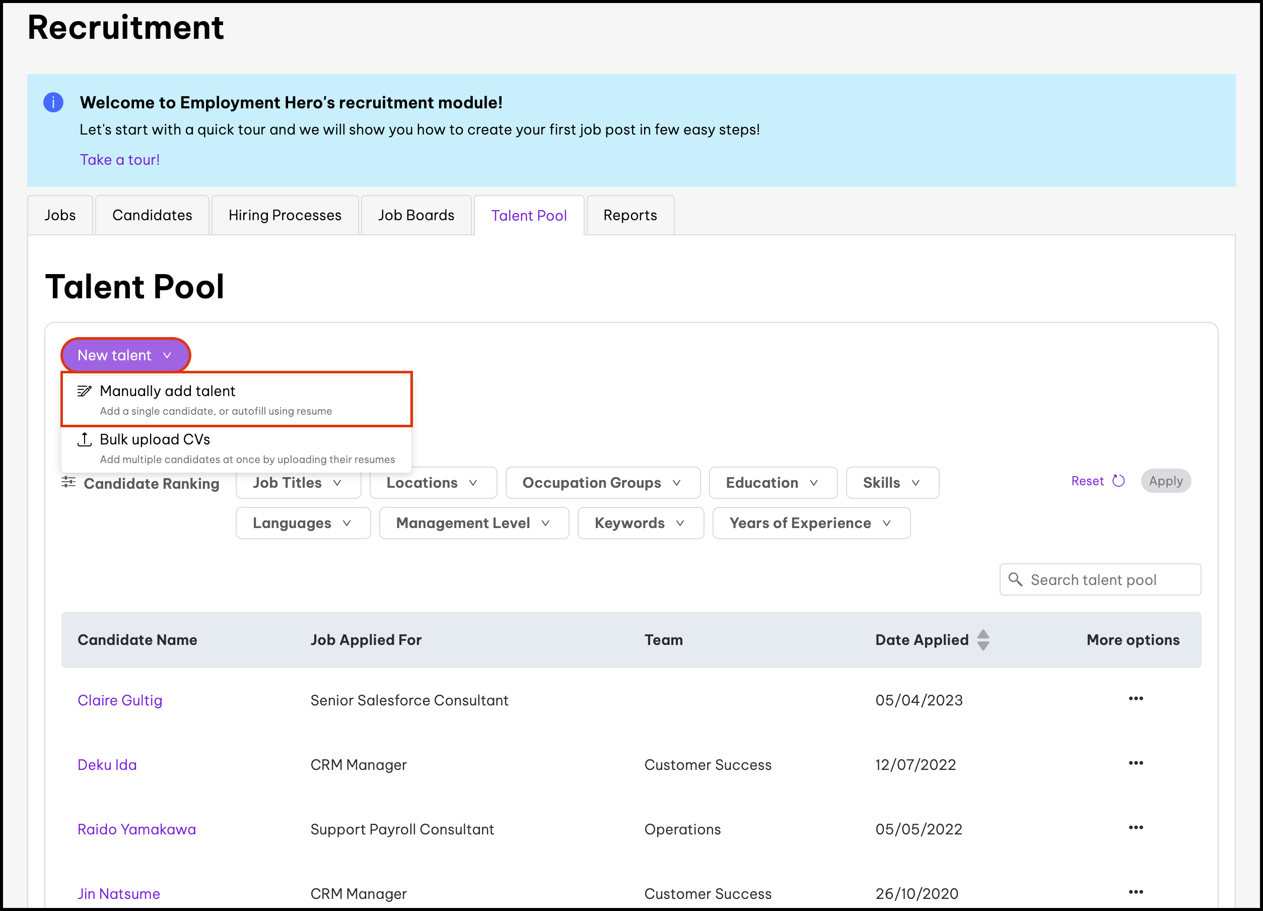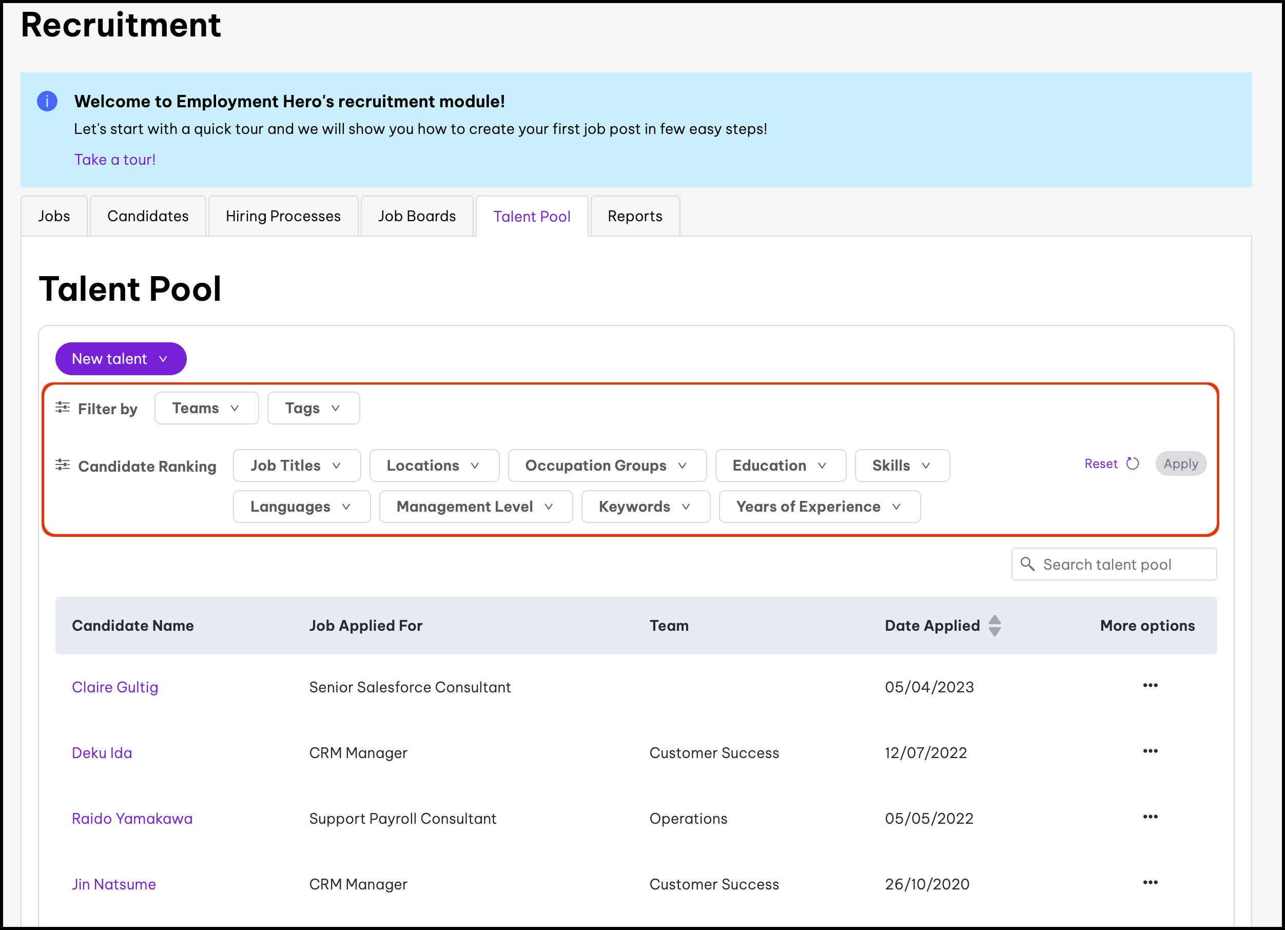 The Talent Pool feature can help, by enabling you to copy and keep candidate information for future consideration, which will provide increased efficiency when recruiting for future roles. It guarantees you have fantastic candidates at your fingertips when you need to reconnect and enhances your speed to market when recruiting the best talent for your organisation.